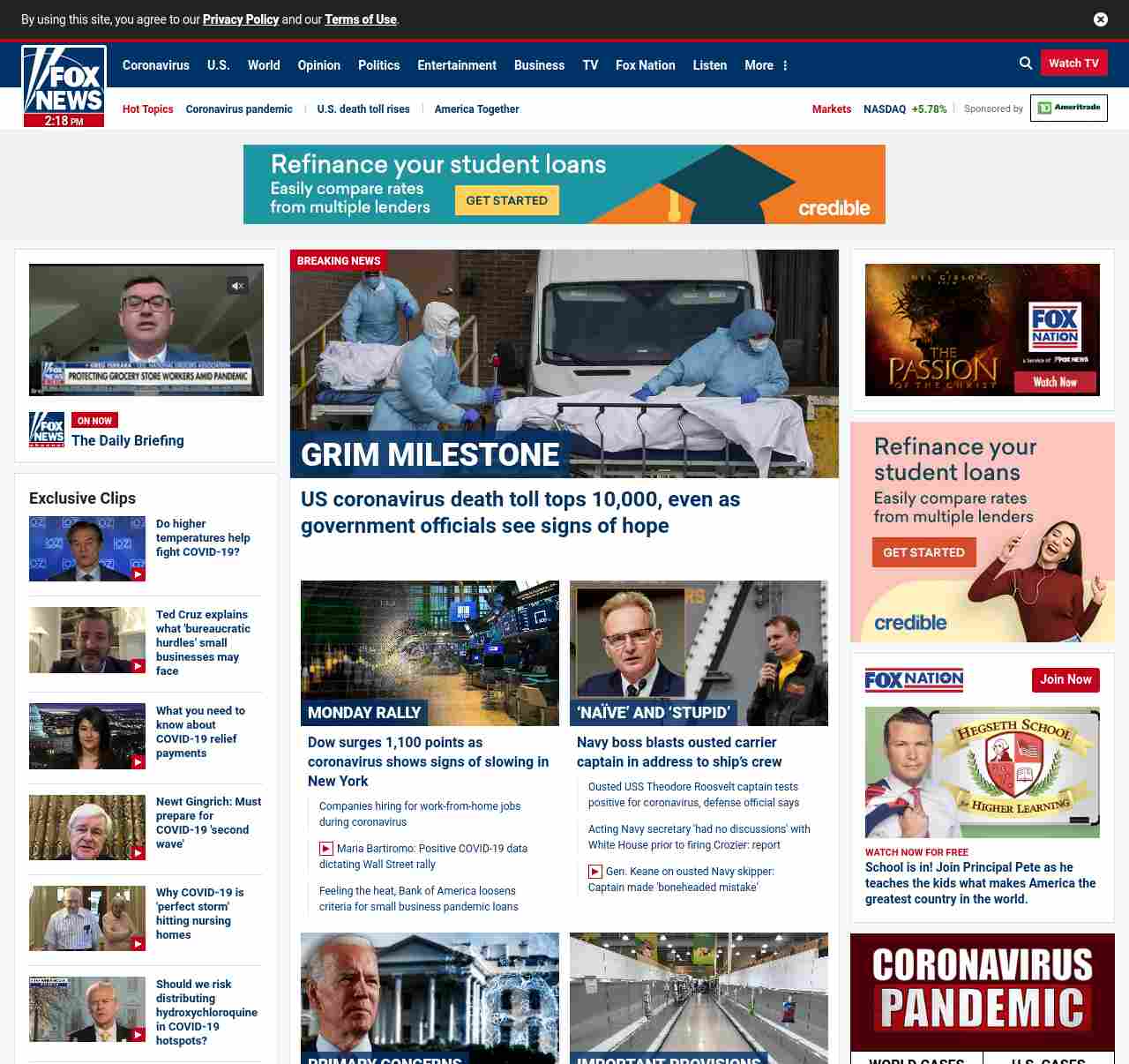 FN: [[GRIM MILESTONE]] US coronavirus death toll tops 10, 000, even as government officials see signs of hope ((lubuntu at wor2))