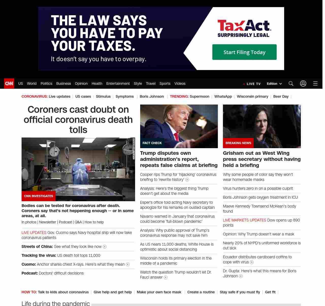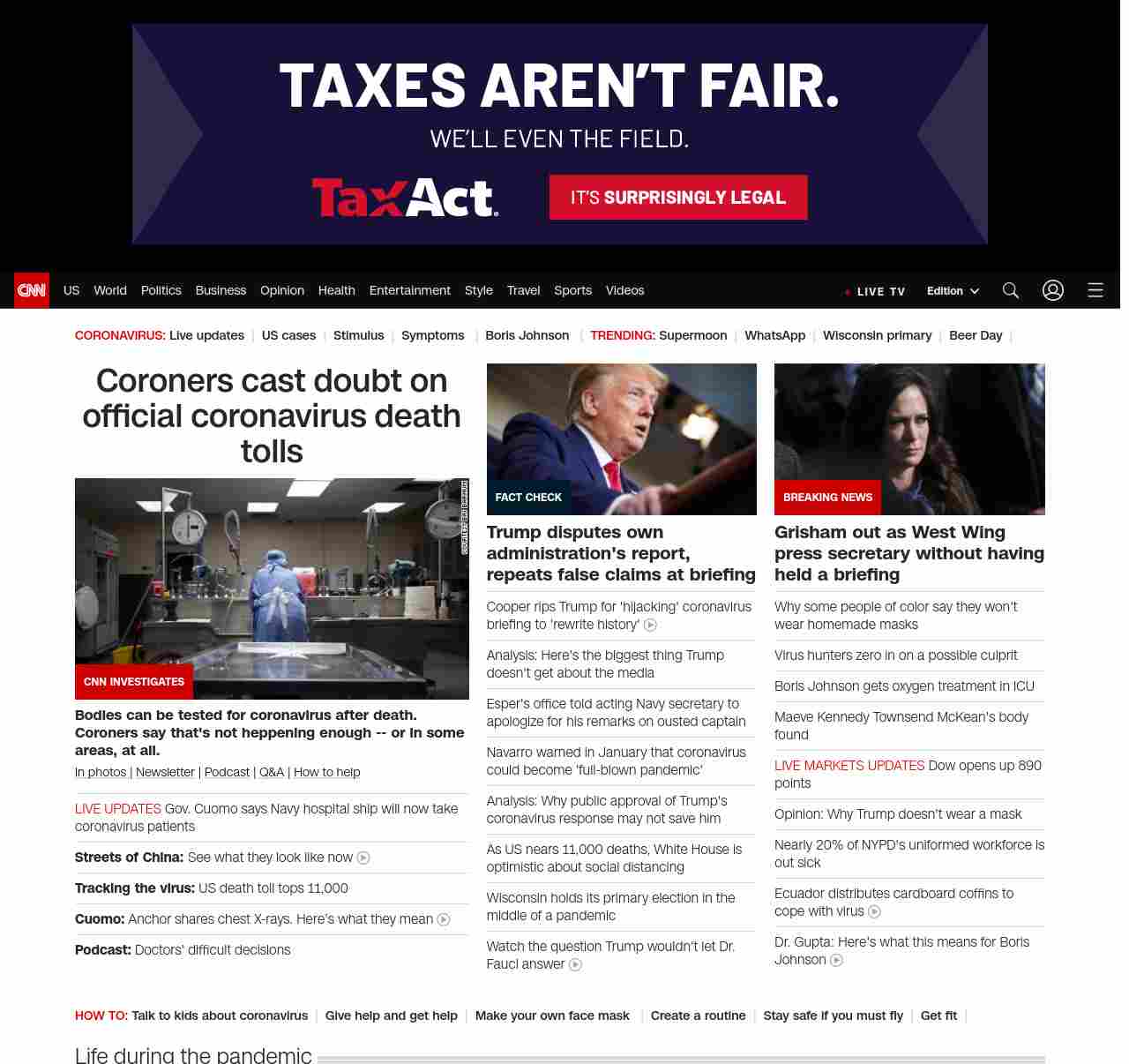 || screaming-banner-text banner-text-size–char-47″ data-analytics=”_list-hierarchical-xs_article_”> Coroners cast doubt on official coronavirus death tolls ||” , title: “CNN – Breaking News, Latest News and Videos” , siblings: {“articleList”:[{“uri”:”/2020/04/06/health/coronavirus-coroners-uncounted-deaths-invs/index.html”,”headline”:”u003cstrong>Some coroners say coronavirus tests are too scarce to confirm suspected casesu003c/strong>”,”thumbnail”:”//cdn.cnn.com/cnnnext/dam/assets/200402161533-01-coronavirus-coroners-barnum-4-small-11.jpg”,”duration”:””,”description”:”u003ca href=”https://www.cnn.com/2020/03/19/world/gallery/novel-coronavirus-outbreak/index.html” target=”_blank”>In photos u003c/a>| u003ca href=”https://www.cnn.com/specials/coronavirus-newsletter?utm_source=hp&source=hp” target=”_blank”>Newsletteru003c/a> | u003ca href=”https://www.cnn.com/audio/podcasts/corona-virus”>Podcastu003c/a> | u003ca href=”https://www.cnn.com/interactive/2020/health/coronavirus-questions-answers/” target=”_blank”>Q&Au003c/a> | u003ca href=”https://www.cnn.com/interactive/2020/health/coronavirus-how-to-help/” target=”_blank”>How to helpu003c/a>”,”layout”:””
