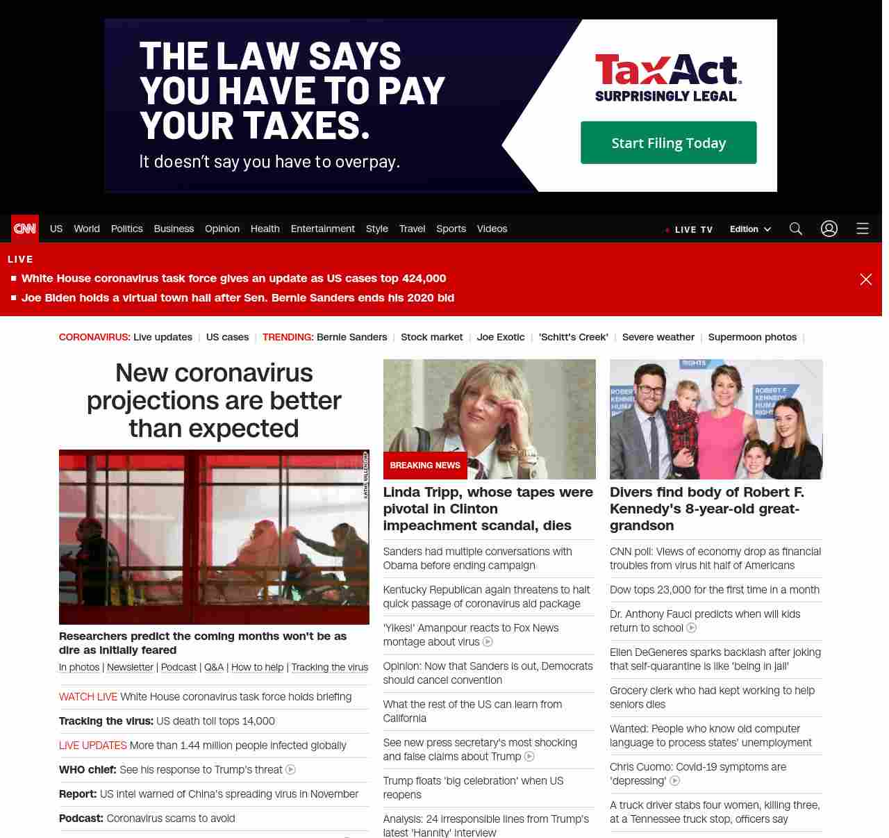 || screaming-banner-text banner-text-size–char-47″ data-analytics=”_list-hierarchical-xs_article_”> New coronavirus projections are better than expected ||” , title: “CNN – Breaking News, Latest News and Videos” , siblings: {“articleList”:[{“uri”:”/2020/04/08/health/us-coronavirus-wednesday/index.html”,”headline”:”u003cstrong>Researchers predict the coming months won’t be as dire as initially fearedu003c/strong>”,”thumbnail”:”//cdn.cnn.com/cnnnext/dam/assets/200408013302-us-coronavirus-wednesday-0407-small-11.jpg”,”duration”:””,”description”:”u003ca href=”https://www.cnn.com/2020/03/19/world/gallery/novel-coronavirus-outbreak/index.html” target=”_blank”>In photos u003c/a>| u003ca href=”https://www.cnn.com/specials/coronavirus-newsletter?utm_source=hp&source=hp” target=”_blank”>Newsletteru003c/a> | u003ca href=”https://www.cnn.com/audio/podcasts/corona-virus”>Podcastu003c/a> | u003ca href=”https://www.cnn.com/interactive/2020/health/coronavirus-questions-answers/” target=”_blank”>Q&Au003c/a> | u003ca href=”https://www.cnn.com/interactive/2020/health/coronavirus-how-to-help/” target=”_blank”>How to helpu003c/a> | u003ca href=”https://www.cnn.com/interactive/2020/health/coronavirus-us-maps-and-cases/” target=”_blank”>Tracking the virusu003c/a>”,”layout”:””
