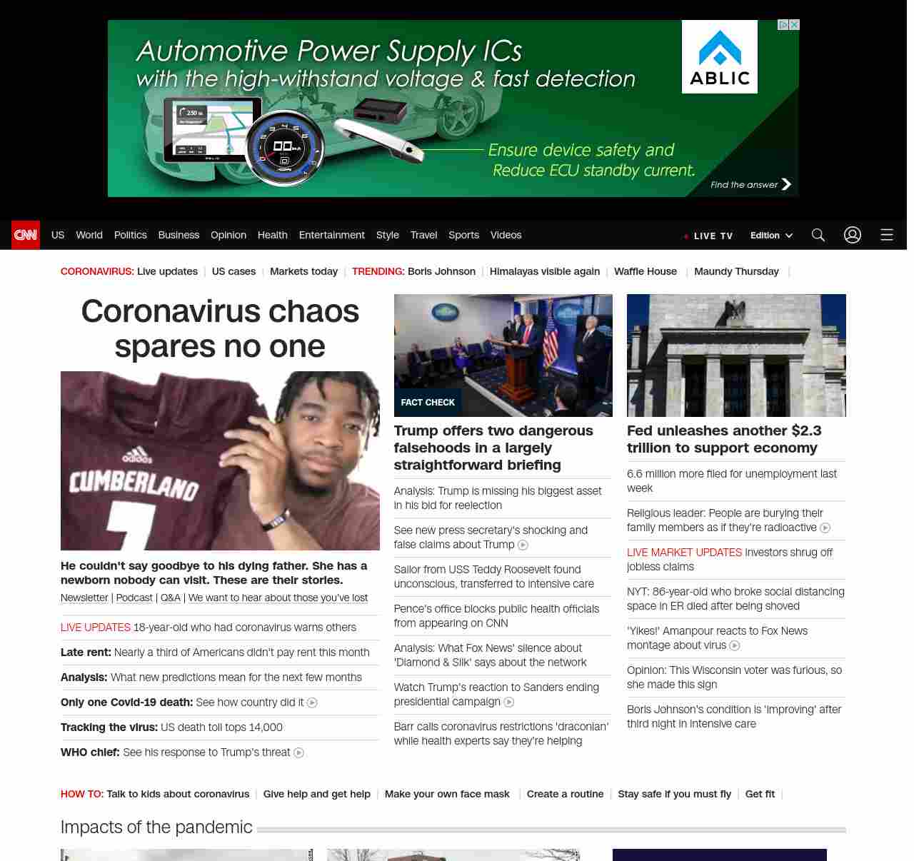 || screaming-banner-text banner-text-size–char-32″ data-analytics=”_list-hierarchical-xs_hyperlink_”> Coronavirus chaos spares no one ||” , title: “CNN – Breaking News, Latest News and Videos” , siblings: {“articleList”:[{“uri”:”/2020/04/09/business/americans-rent-payment-trnd/index.html”,”headline”:”u003cstrong>Late rent:u003c/strong> Nearly a third of Americans didn’t pay rent this month”,”thumbnail”:”//cdn.cnn.com/cnnnext/dam/assets/200401201034-renters-strike-lah-pkg-small-11.jpg”,”duration”:””,”description”:”With nearly 10 million Americans u003ca href=”https://www.cnn.com/2020/04/02/economy/unemployment-benefits-coronavirus/index.html” target=”_blank”>filing for unemployment in Marchu003c/a>, April 1 was always going to be a difficult day for US renters. “,”layout”:””