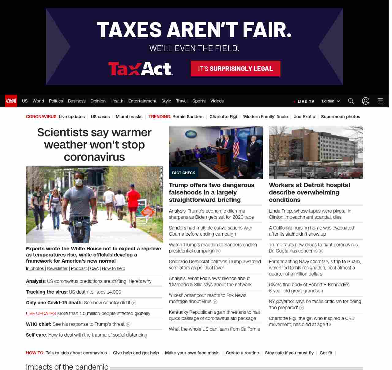CNN1: FOXVCNN=|Scientists say warmer weather won’t stop coronavirus| ((lubuntu at wor2))