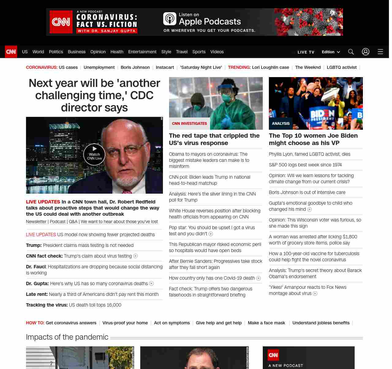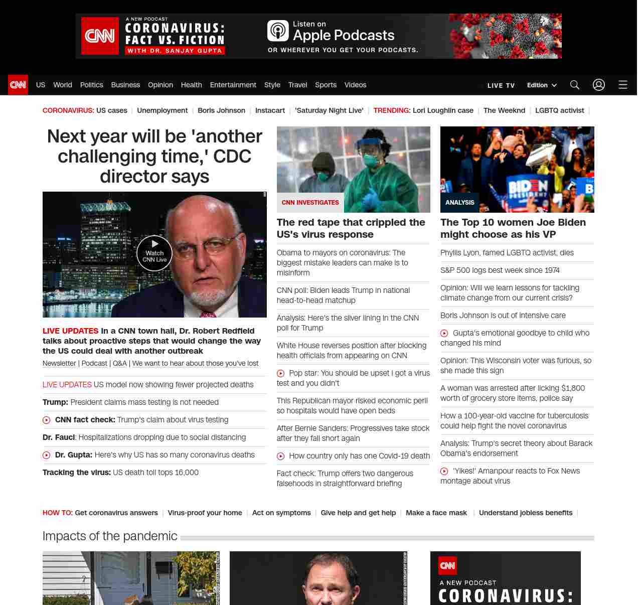|| screaming-banner-text banner-text-size–char-47″ data-analytics=”_list-hierarchical-xs_story_”> Next year will be ‘another challenging time,’ CDC director says ||” , title: “CNN – Breaking News, Latest News and Videos” , siblings: {“articleList”:[{“uri”:”/2020/04/09/politics/trump-coronavirus-tests/index.html”,”headline”:”u003cstrong>Trump: u003c/strong>President claims mass testing is not needed”,”thumbnail”:”//cdn.cnn.com/cnnnext/dam/assets/200409183814-01-coronavirus-briefing-0409-small-11.jpg”,”duration”:””,”description”:”President Donald Trump said Thursday that there have been more than two million u003ca href=”https://www.cnn.com/world/live-news/coronavirus-pandemic-04-09-20/index.html” target=”_blank”>coronavirusu003c/a> tests conducted in the United States but u003ca href=”https://www.cnn.com/2020/04/01/politics/testing-backlog-coronavirus-quest-invs/index.html” target=”_blank”>conceded that mass testing is not going to happen.u003c/a>”,”layout”:””