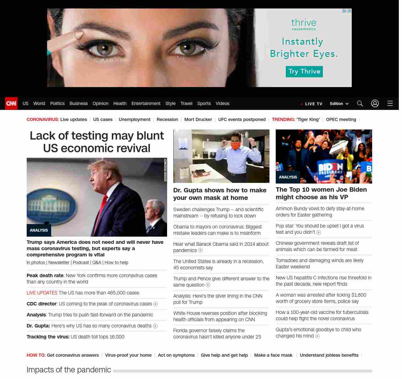 || screaming-banner-text banner-text-size–char-26″ data-analytics=”_list-hierarchical-xs_article_”> US nears peak death rate ||” , title: “CNN – Breaking News, Latest News and Videos” , siblings: {“articleList”:[{“uri”:”/2020/04/10/health/us-coronavirus-friday/index.html”,”headline”:”u003cstrong>New York confirms it has more coronavirus cases than any country in the world, other than the USu003c/strong>”,”thumbnail”:”//cdn.cnn.com/cnnnext/dam/assets/200410000439-social-distancing-small-11.jpg”,”duration”:””,”description”:”u003ca href=”https://www.cnn.com/2020/03/19/world/gallery/novel-coronavirus-outbreak/index.html” target=”_blank”>In photos u003c/a>| u003ca href=”https://www.cnn.com/specials/coronavirus-newsletter?utm_source=hp&source=hp” target=”_blank”>Newsletteru003c/a> | u003ca href=”https://www.cnn.com/audio/podcasts/corona-virus”>Podcastu003c/a> | u003ca href=”https://www.cnn.com/interactive/2020/health/coronavirus-questions-answers/” target=”_blank”>Q&Au003c/a> | u003ca href=”https://www.cnn.com/interactive/2020/health/coronavirus-how-to-help/” target=”_blank”>How to helpu003c/a>”,”layout”:””