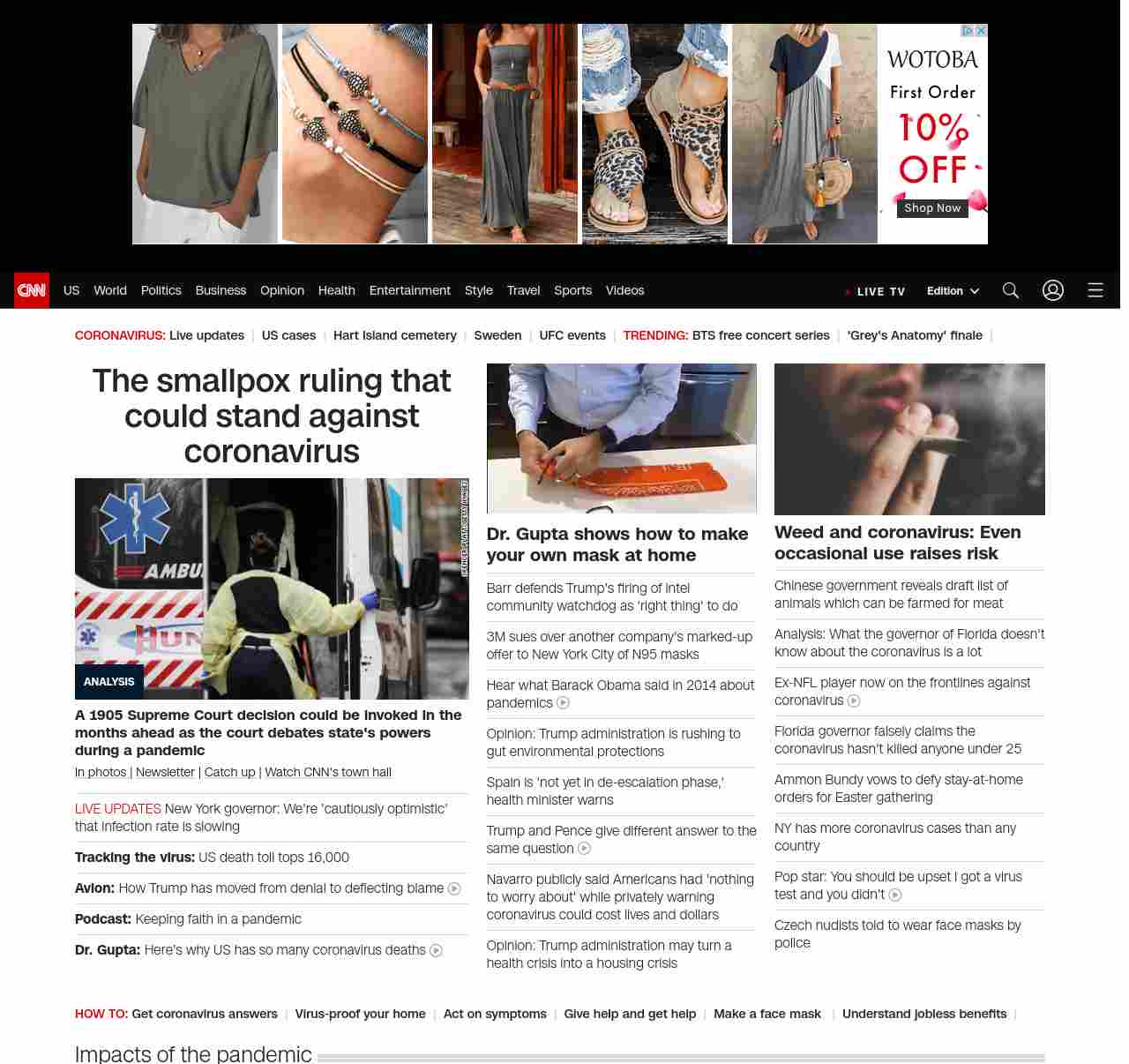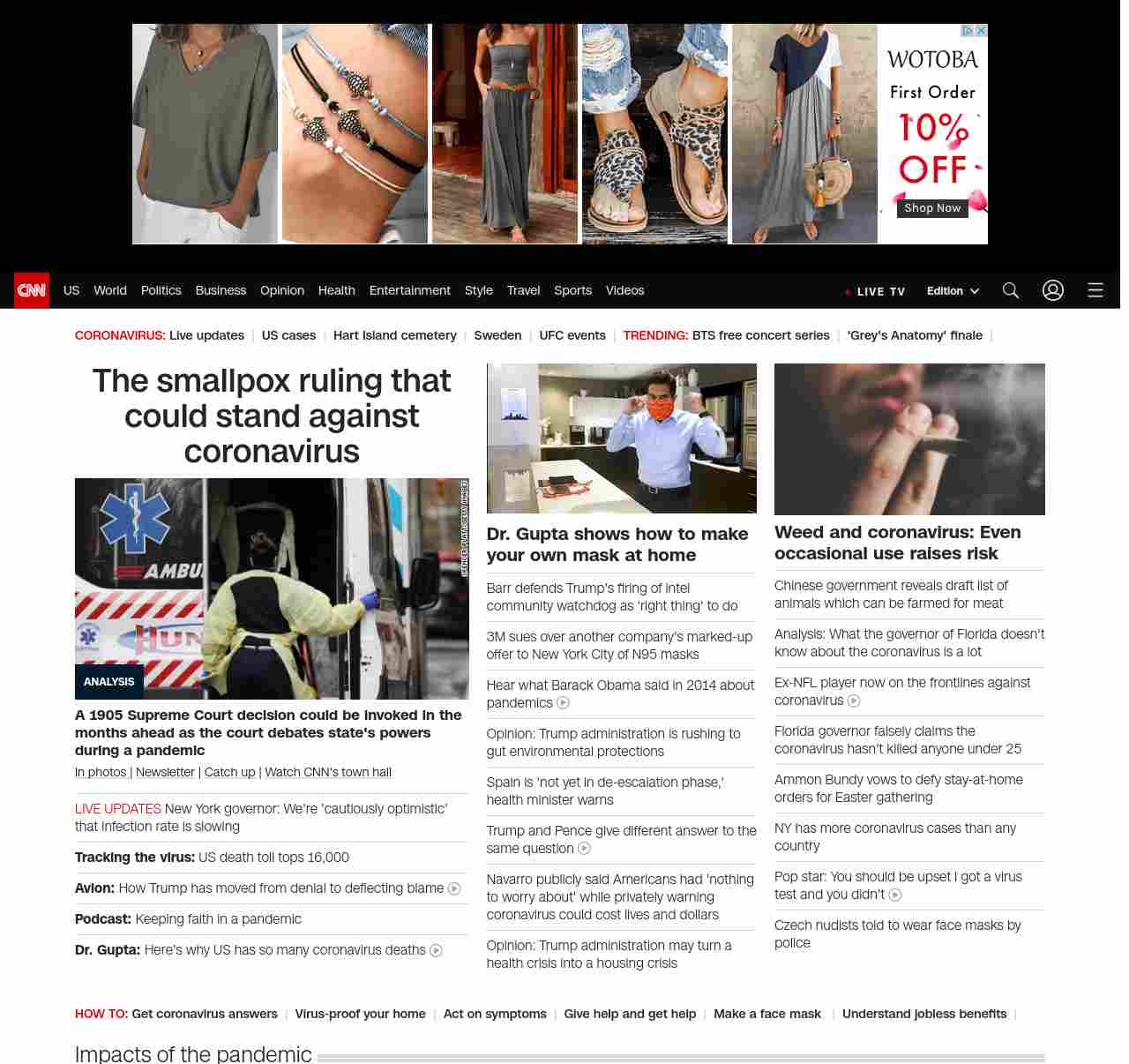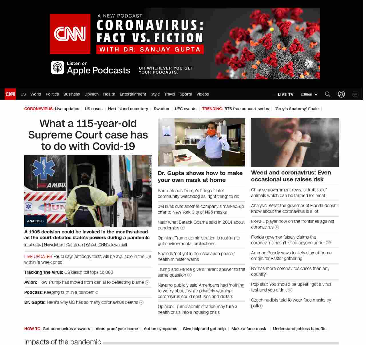 || screaming-banner-text banner-text-size–char-47″ data-analytics=”_list-hierarchical-xs_article_”> The smallpox ruling that could stand against coronavirus ||” , title: “CNN – Breaking News, Latest News and Videos” , siblings: {“articleList”:[{“uri”:”/2020/04/10/politics/pandemic-coronavirus-jacobson-supreme-court-abortion-rights/index.html”,”headline”:”u003cstrong>A 1905 Supreme Court decision could be invoked in the months ahead as the court debates state’s powers during a pandemicu003c/strong>”,”thumbnail”:”//cdn.cnn.com/cnnnext/dam/assets/200405013646-01-coronavirus-0404-new-york-small-11.jpg”,”duration”:””,”description”:”u003ca href=”https://www.cnn.com/2020/03/19/world/gallery/novel-coronavirus-outbreak/index.html” target=”_blank”>In photos u003c/a>| u003ca href=”https://www.cnn.com/specials/coronavirus-newsletter?utm_source=hp&source=hp” target=”_blank”>Newsletteru003c/a> | u003ca href=”https://www.cnn.com/2020/04/10/world/coronavirus-newsletter-04-10-20-intl/index.html” target=”_blank”>Catch upu003c/a> | u003ca href=”https://www.cnn.com/videos/health/2020/04/09/entire-april-9-coronavirus-town-hall-part-1-sot-vpx.cnn” target=”_blank”>Watch CNN’s town hallu003c/a>”,”layout”:””