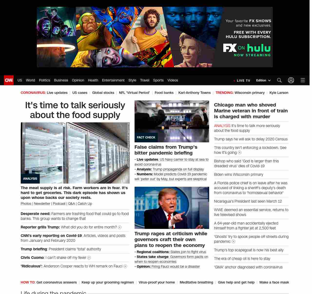 || screaming-banner-text banner-text-size–char-47″ data-analytics=”_list-hierarchical-xs_article_”> It’s time to talk seriously about the food supply ||” , title: “CNN – Breaking News, Latest News and Videos” , siblings: {“articleList”:[{“uri”:”/2020/04/14/politics/what-matters-april-13/index.html”,”headline”:”u003cstrong>The meat supply is at risk. Farm workers are in fear. It’s hard to get groceries. This dark episode has shown us upon whose backs our society rests.u003c/strong>”,”thumbnail”:”//cdn.cnn.com/cnnnext/dam/assets/200413175236-empty-shelves-supermarket-0321-small-11.jpg”,”duration”:””,”description”:”u003ca href=”https://www.cnn.com/2020/03/19/world/gallery/novel-coronavirus-outbreak/index.html” target=”_blank”>Photos u003c/a>| u003ca href=”https://www.cnn.com/specials/coronavirus-newsletter?utm_source=hp&source=hp” target=”_blank”>Newsletteru003c/a> | u003ca href=”https://www.cnn.com/audio/podcasts/corona-virus”>Podcastu003c/a> | u003ca href=”https://www.cnn.com/interactive/2020/health/coronavirus-questions-answers/” target=”_blank”>Q&Au003c/a> | u003ca href=”http://www.cnn.com/2020/04/12/world/coronavirus-newsletter-04-12-20-intl/index.html” target=”_blank”>Catch Upu003c/a>”,”layout”:””