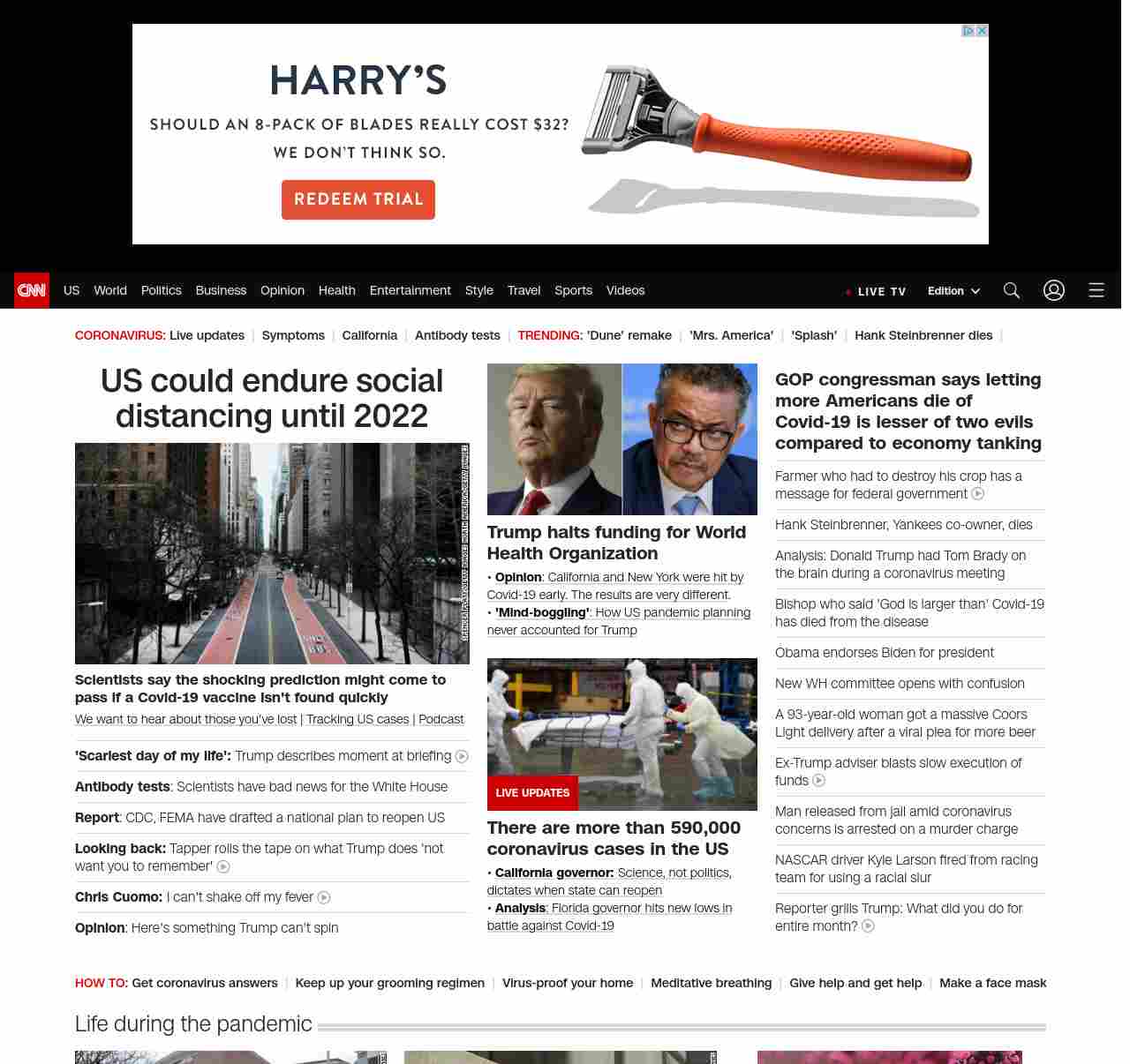 || screaming-banner-text banner-text-size–char-47″ data-analytics=”_list-hierarchical-xs_article_”> US could endure social distancing until 2022 ||” , title: “CNN – Breaking News, Latest News and Videos” , siblings: {“articleList”:[{“uri”:”/2020/04/14/health/coronavirus-antibody-tests-scientists/index.html”,”headline”:”u003cstrong>Some of the nation’s top scientists briefed the White House on issues with the Covid-19 antibody testsu003c/strong>”,”thumbnail”:”//cdn.cnn.com/cnnnext/dam/assets/200404095437-01-walmart-coronavirus-new-york-0403-small-11.jpg”,”duration”:””,”description”:”u003ca href=”https://www.cnn.com/2020/04/08/health/share-coronavirus-covid19-victims-memories/index.html” target=”_blank”>We want to hear about those you’ve lostu003c/a> | u003ca href=”https://www.cnn.com/interactive/2020/health/coronavirus-us-maps-and-cases/” target=”_blank”>Tracking US cases u003c/a>| u003ca href=”https://www.cnn.com/audio/podcasts/corona-virus”>Podcastu003c/a>”,”layout”:””