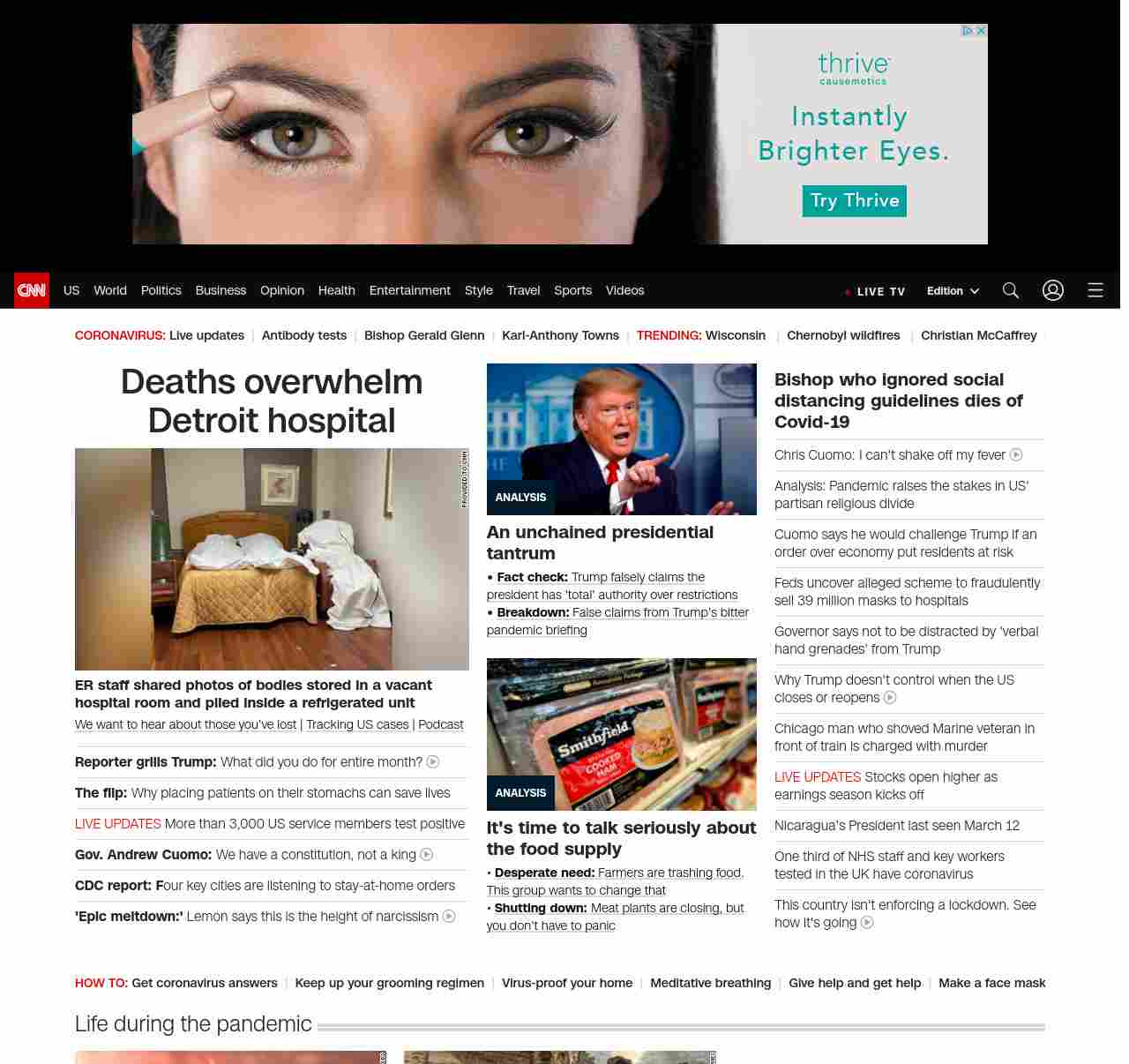|| screaming-banner-text banner-text-size–char-35″ data-analytics=”_list-hierarchical-xs_article_”> Deaths overwhelm Detroit hospital ||” , title: “CNN – Breaking News, Latest News and Videos” , siblings: {“articleList”:[{“uri”:”/2020/04/14/health/coronavirus-prone-positioning/index.html”,”headline”:”u003cstrong>A man in his 40s diagnosed with Covid-19 was in a dire situation. Then doctors tried flipping him on his back.u003c/strong>”,”thumbnail”:”//cdn.cnn.com/cnnnext/dam/assets/200403173720-holy-name-medical-center-small-11.jpg”,”duration”:””,”description”:”u003ca href=”https://www.cnn.com/2020/04/08/health/share-coronavirus-covid19-victims-memories/index.html” target=”_blank”>We want to hear about those you’ve lostu003c/a> | u003ca href=”https://www.cnn.com/interactive/2020/health/coronavirus-us-maps-and-cases/” target=”_blank”>Tracking US cases u003c/a>| u003ca href=”https://www.cnn.com/audio/podcasts/corona-virus”>Podcastu003c/a>”,”layout”:””