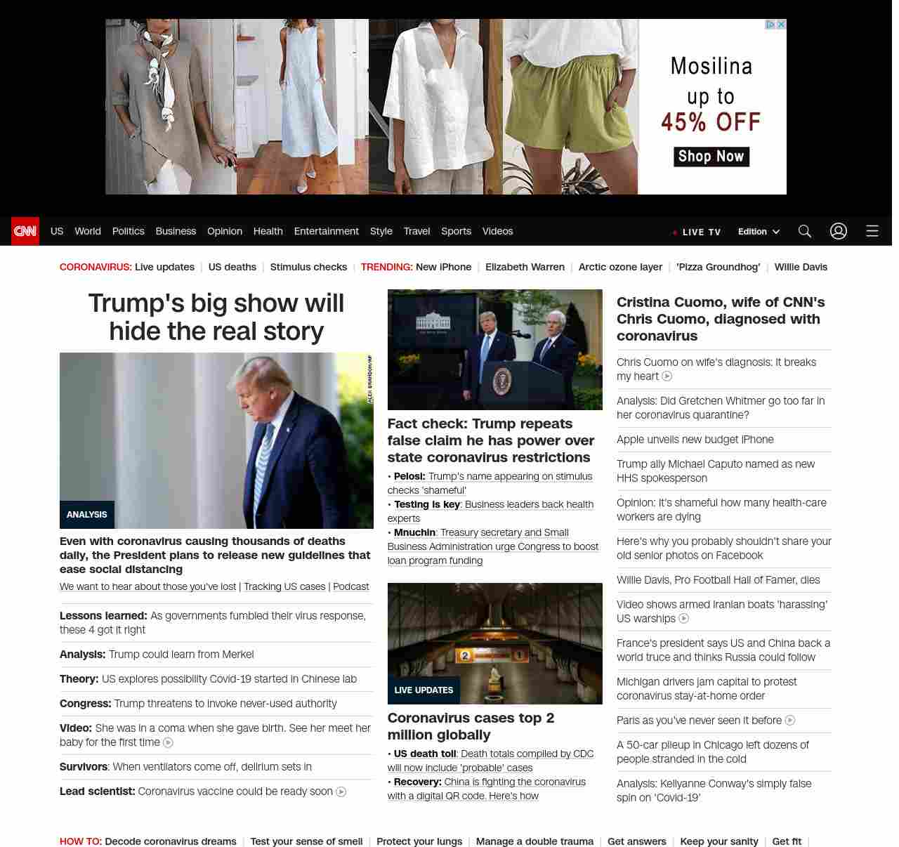 CNN3: “:”u003cstrong>Even with coronavirus causing thousands of deaths daily, the President plans to release new guidelines that ease social distancing u003c/strong>”, “BANNER=|pagerendered| ((lubuntu at wor2))