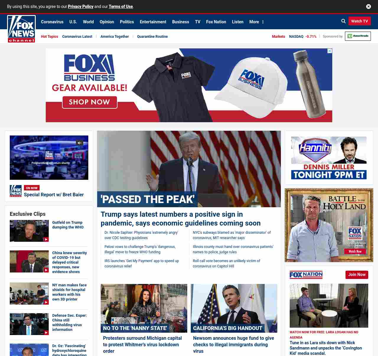 =”https://www.foxnews.com/politics/trump-argues-us-has-passed-the-peak-on-new-cases-teases-forthcoming-guidelines-for-reopening-economy“>Trump says latest numbers a positive sign in pandemic, says economic guidelines coming soon