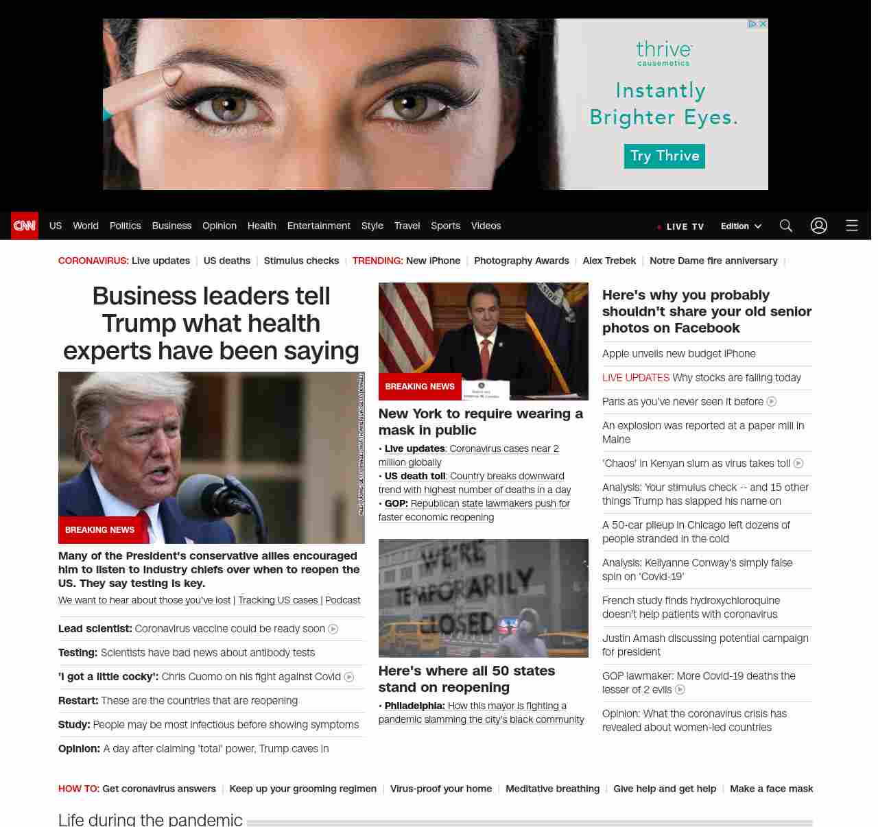 || screaming-banner-text banner-text-size–char-47″ data-analytics=”_list-hierarchical-xs_article_”> Business leaders echo health experts’ advice to Trump ||” , title: “CNN – Breaking News, Latest News and Videos” , siblings: {“articleList”:[{“uri”:”/2020/04/15/politics/trump-business-council-calls/index.html”,”headline”:”u003cstrong>Many of the President’s conservative allies encouraged him to listen to industry chiefs over when to reopen the US. They say testing is key.u003c/strong>”,”thumbnail”:”//cdn.cnn.com/cnnnext/dam/assets/200414235810-donald-trump-april-14-2020-01-small-11.jpg”,”duration”:””,”description”:”u003ca href=”https://www.cnn.com/2020/04/08/health/share-coronavirus-covid19-victims-memories/index.html” target=”_blank”>We want to hear about those you’ve lostu003c/a> | u003ca href=”https://www.cnn.com/interactive/2020/health/coronavirus-us-maps-and-cases/” target=”_blank”>Tracking US cases u003c/a>| u003ca href=”https://www.cnn.com/audio/podcasts/corona-virus”>Podcastu003c/a>”,”layout”:””