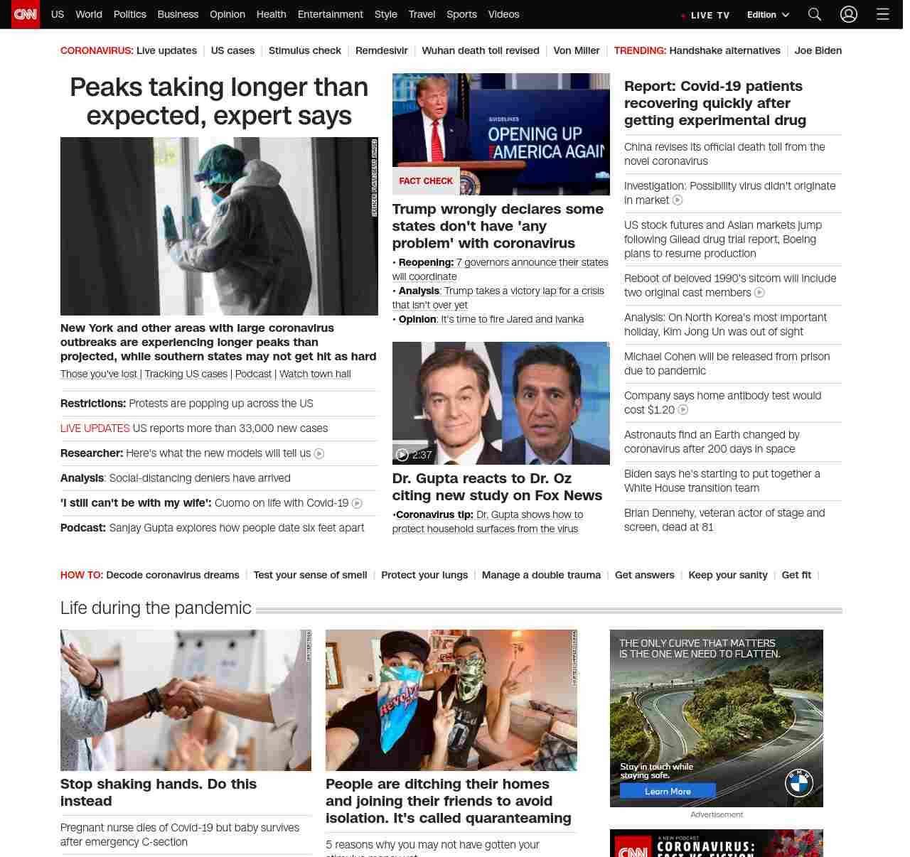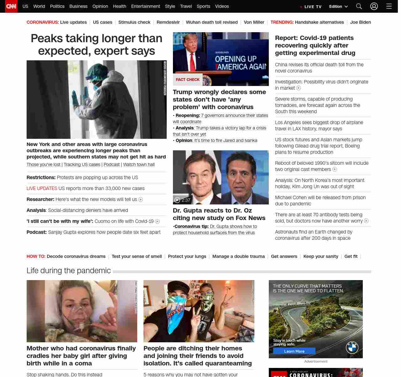 || screaming-banner-text banner-text-size–char-47″ data-analytics=”_list-hierarchical-xs_article_”> Peaks taking longer than expected, expert says ||” , title: “CNN – Breaking News, Latest News and Videos” , siblings: {“articleList”:[{“uri”:”/2020/04/17/health/us-coronavirus-friday/index.html”,”headline”:”u003cstrong>New York and other areas with large coronavirus outbreaks are experiencing longer peaks than projected, while southern states may not get hit as hardu003c/strong>”,”thumbnail”:”//cdn.cnn.com/cnnnext/dam/assets/200417035910-medical-worker-0415-nyc-small-11.jpg”,”duration”:””,”description”:”u003ca href=”https://www.cnn.com/2020/04/08/health/share-coronavirus-covid19-victims-memories/index.html” target=”_blank”>Those you’ve lost u003c/a>| u003ca href=”https://www.cnn.com/interactive/2020/health/coronavirus-us-maps-and-cases/” target=”_blank”>Tracking US casesu003c/a> | u003ca href=”https://www.cnn.com/audio/podcasts/corona-virus” target=”_blank”>Podcastu003c/a> | u003ca href=”https://www.cnn.com/2020/04/17/app-news-section/full-coronavirus-town-hall-april-16-2020-app/index.html”>Watch town hallu003c/a>”,”layout”:””