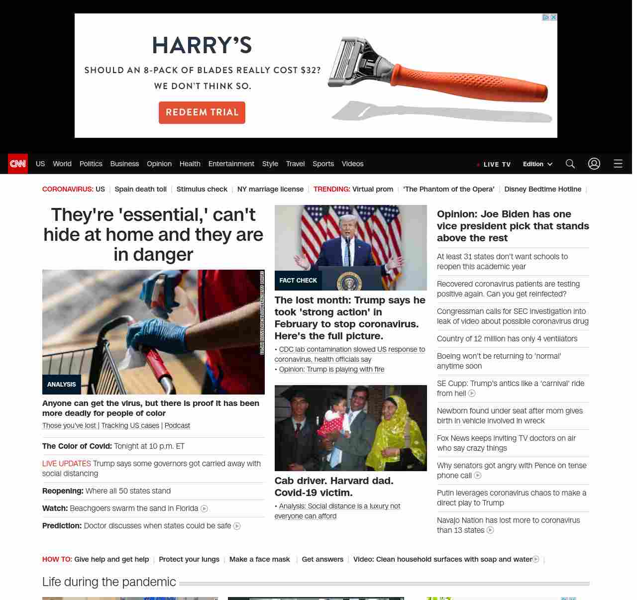 CNN1: FOXVCNN=|They’re ‘essential, ‘ can’t hide at home and they are in danger| ((lubuntu at wor2))