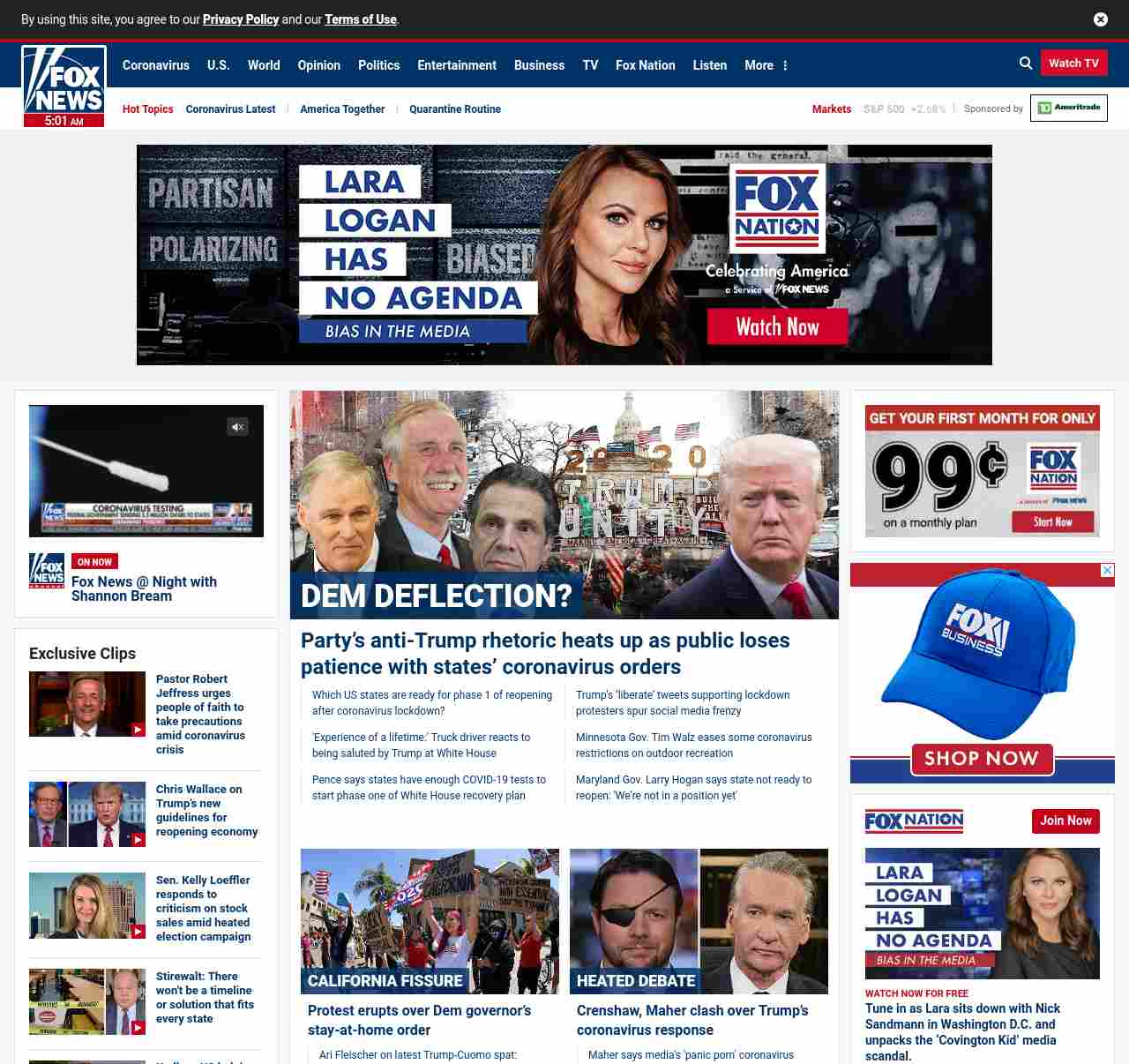 FN: [[DEM DEFLECTION?]] Party’s anti-Trump rhetoric heats up as public loses patience with states’ coronavirus orders ((lubuntu at wor2))