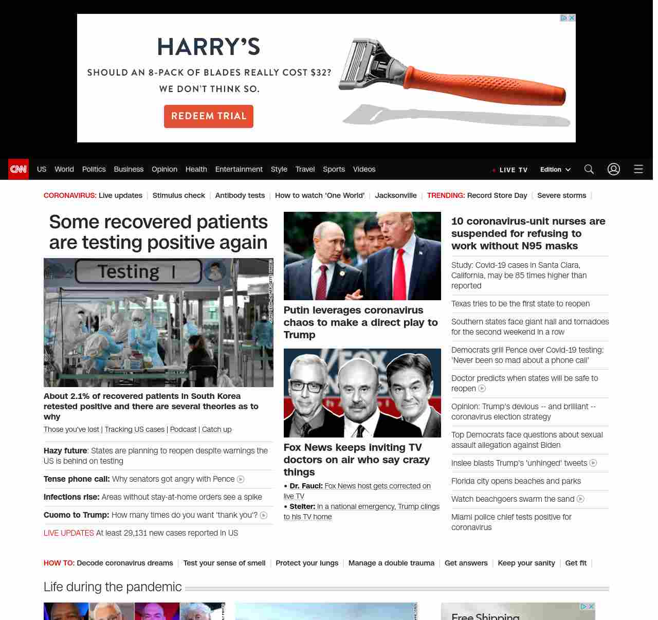|| screaming-banner-text banner-text-size–char-47″ data-analytics=”_list-hierarchical-xs_article_”> Some recovered patients are testing positive again ||” , title: “CNN – Breaking News, Latest News and Videos” , siblings: {“articleList”:[{“uri”:”/2020/04/17/health/south-korea-coronavirus-retesting-positive-intl-hnk/index.html”,”headline”:”u003cstrong>About 2.1% of recovered patients in South Korea retested positive and there are several theories as to whyu003c/strong>”,”thumbnail”:”//cdn.cnn.com/cnnnext/dam/assets/200417002231-01-south-korea-testing-0401-small-11.jpg”,”duration”:””,”description”:”u003ca href=”https://www.cnn.com/2020/04/08/health/share-coronavirus-covid19-victims-memories/index.html” target=”_blank”>Those you’ve lost u003c/a>| u003ca href=”https://www.cnn.com/interactive/2020/health/coronavirus-us-maps-and-cases/” target=”_blank”>Tracking US casesu003c/a> | u003ca href=”https://www.cnn.com/audio/podcasts/corona-virus” target=”_blank”>Podcastu003c/a> | u003ca href=”https://www.cnn.com/2020/04/18/world/coronavirus-newsletter-04-18-20/index.html” target=”_blank”>Catch up u003c/a>”,”layout”:””