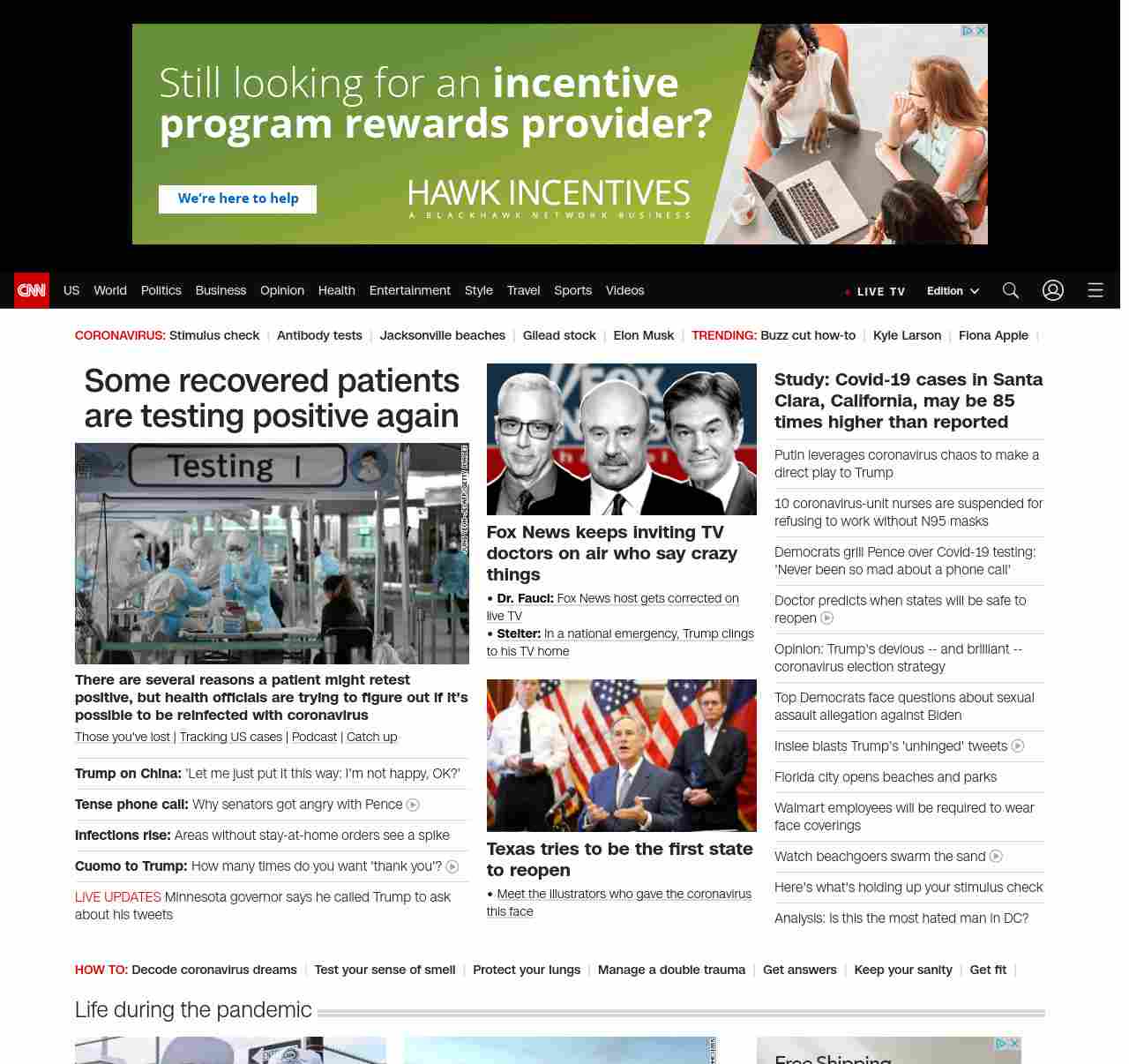 || screaming-banner-text banner-text-size–char-47″ data-analytics=”_list-hierarchical-xs_article_”> Some recovered patients are testing positive again ||” , title: “CNN – Breaking News, Latest News and Videos” , siblings: {“articleList”:[{“uri”:”/2020/04/17/health/south-korea-coronavirus-retesting-positive-intl-hnk/index.html”,”headline”:”u003cstrong>There are several reasons a patient might retest positive, but health officials are trying to figure out if it’s possible to be reinfected with coronavirusu003c/strong>”,”thumbnail”:”//cdn.cnn.com/cnnnext/dam/assets/200417002231-01-south-korea-testing-0401-small-11.jpg”,”duration”:””,”description”:”u003ca href=”https://www.cnn.com/2020/04/08/health/share-coronavirus-covid19-victims-memories/index.html” target=”_blank”>Those you’ve lost u003c/a>| u003ca href=”https://www.cnn.com/interactive/2020/health/coronavirus-us-maps-and-cases/” target=”_blank”>Tracking US casesu003c/a> | u003ca href=”https://www.cnn.com/audio/podcasts/corona-virus” target=”_blank”>Podcastu003c/a> | u003ca href=”https://www.cnn.com/2020/04/17/world/coronavirus-newsletter-04-17-20-intl/index.html” target=”_blank”>Catch up u003c/a>”,”layout”:””