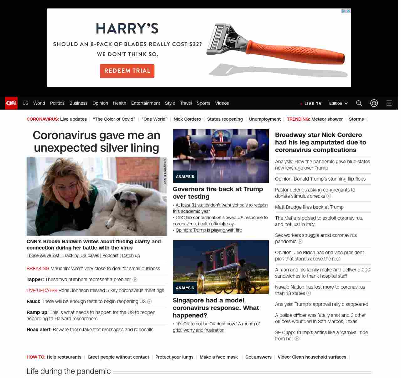 || screaming-banner-text banner-text-size–char-47″ data-analytics=”_list-hierarchical-xs_article_”> Coronavirus gave me an unexpected silver lining ||” , title: “CNN – Breaking News, Latest News and Videos” , siblings: {“articleList”:[{“uri”:”/2020/04/19/business/grocery-stores-coronavirus-pickup-delivery/index.html”,”headline”:”u003cstrong>Dozens of store workers have died from Covid-19, despite masks, temperature checks and capacity restrictions to keep them safeu003c/strong>”,”thumbnail”:”//cdn.cnn.com/cnnnext/dam/assets/200417150522-whole-foods-market-nyc-customer-line-0415-small-11.jpg”,”duration”:””,”description”:”u003ca href=”https://www.cnn.com/interactive/2020/health/coronavirus-victims-memories/” target=”_blank”>Those we’ve lost u003c/a>| u003ca href=”https://www.cnn.com/interactive/2020/health/coronavirus-us-maps-and-cases/” target=”_blank”>Tracking US casesu003c/a> | u003ca href=”https://www.cnn.com/audio/podcasts/corona-virus” target=”_blank”>Podcastu003c/a> | u003ca href=”https://www.cnn.com/2020/04/19/world/coronavirus-newsletter-04-19-20/index.html” target=”_blank”>Catch up u003c/a>”,”layout”:””