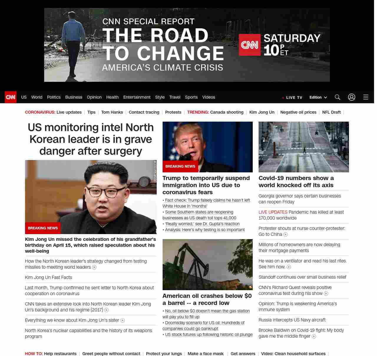 || screaming-banner-text banner-text-size–char-47″ data-analytics=”_list-hierarchical-xs_article_”> US source: North Korean leader in grave danger after surgery ||” , title: “CNN – Breaking News, Latest News and Videos” , siblings: {“articleList”:[{“uri”:”/2020/04/20/politics/kim-jong-un-north-korea/index.html”,”headline”:”u003cstrong>Kim Jong Un missed the celebration of his grandfather’s birthday on April 15, which raised speculation about his well-beingu003c/strong>”,”thumbnail”:”//cdn.cnn.com/cnnnext/dam/assets/200308195832-02-kim-jong-un-file-small-11.jpg”,”duration”:””,”description”:”The US is monitoring intelligence that North Korea’s leader,u003ca href=”https://www.cnn.com/2012/12/26/world/asia/kim-jong-un—fast-facts/index.html” target=”_blank”> Kim Jong Unu003c/a>, is in grave danger after a surgery, according to US official with direct knowledge.”,”layout”:””