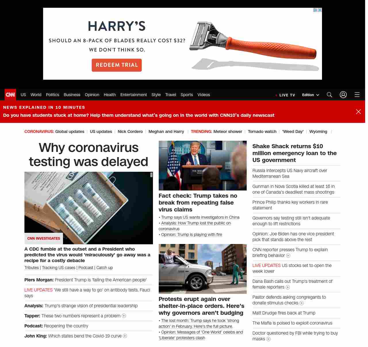 || screaming-banner-text banner-text-size–char-38″ data-analytics=”_list-hierarchical-xs_article_”> Why coronavirus testing was delayed ||” , title: “CNN – Breaking News, Latest News and Videos” , siblings: {“articleList”:[{“uri”:”/2020/04/20/politics/coronavirus-testing-trump-administration-response-invs/index.html”,”headline”:”u003cstrong>A CDC fumble at the outset and a President who predicted the virus would ‘miraculously’ go away was a recipe for a costly debacleu003c/strong>”,”thumbnail”:”//cdn.cnn.com/cnnnext/dam/assets/200307115523-cdc-test-kit-coronavirus-small-11.jpg”,”duration”:””,”description”:”u003ca href=”https://www.cnn.com/interactive/2020/health/coronavirus-victims-memories/” target=”_blank”>Tributesu003c/a> | u003ca href=”https://www.cnn.com/interactive/2020/health/coronavirus-us-maps-and-cases/” target=”_blank”>Tracking US casesu003c/a> | u003ca href=”https://www.cnn.com/audio/podcasts/corona-virus” target=”_blank”>Podcastu003c/a> | u003ca href=”https://www.cnn.com/2020/04/19/world/coronavirus-newsletter-04-19-20/index.html” target=”_blank”>Catch up u003c/a>”,”layout”:””