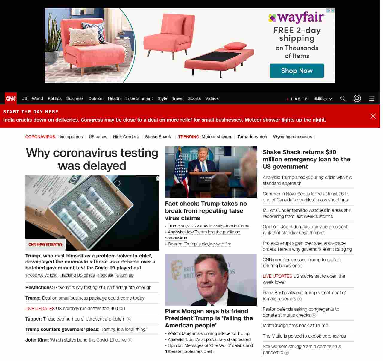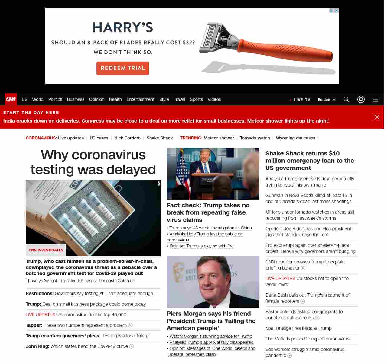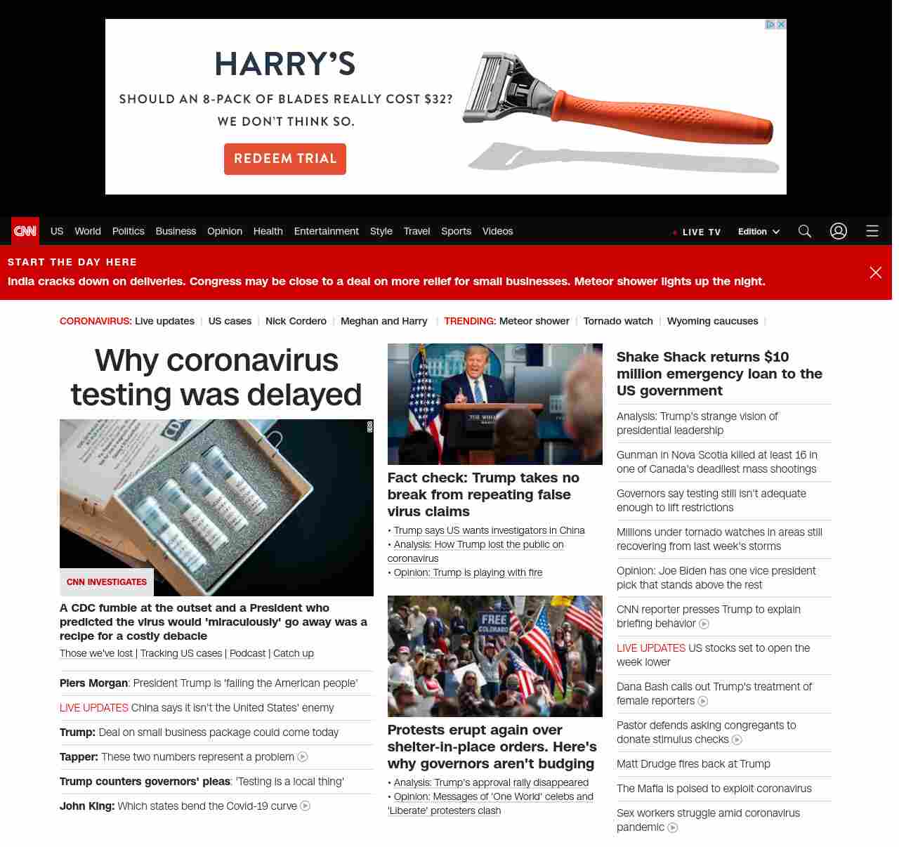 || screaming-banner-text banner-text-size–char-38″ data-analytics=”_list-hierarchical-xs_article_”> Why coronavirus testing was delayed ||” , title: “CNN – Breaking News, Latest News and Videos” , siblings: {“articleList”:[{“uri”:”/2020/04/20/politics/coronavirus-testing-trump-administration-response-invs/index.html”,”headline”:”u003cstrong>A CDC fumble at the outset and a President who predicted the virus would ‘miraculously’ go away was a recipe for a costly debacleu003c/strong>”,”thumbnail”:”//cdn.cnn.com/cnnnext/dam/assets/200307115523-cdc-test-kit-coronavirus-small-11.jpg”,”duration”:””,”description”:”u003ca href=”https://www.cnn.com/interactive/2020/health/coronavirus-victims-memories/” target=”_blank”>Those we’ve lost u003c/a>| u003ca href=”https://www.cnn.com/interactive/2020/health/coronavirus-us-maps-and-cases/” target=”_blank”>Tracking US casesu003c/a> | u003ca href=”https://www.cnn.com/audio/podcasts/corona-virus” target=”_blank”>Podcastu003c/a> | u003ca href=”https://www.cnn.com/2020/04/19/world/coronavirus-newsletter-04-19-20/index.html” target=”_blank”>Catch up u003c/a>”,”layout”:””