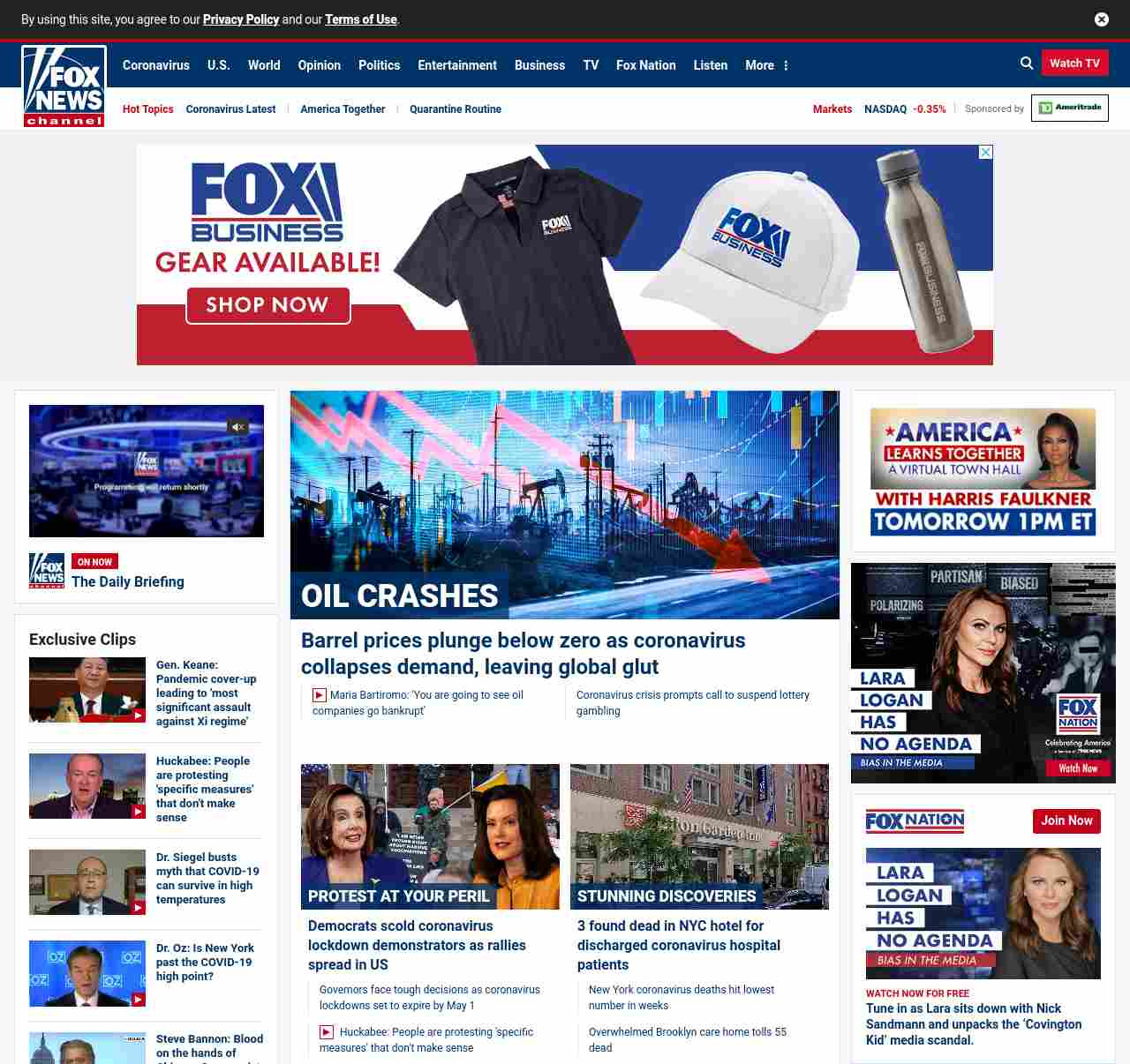 =”https://www.foxbusiness.com/markets/us-stocks-april-20-2020“>Markets sink as coronavirus collapses oil demand, sending barrel prices below zero