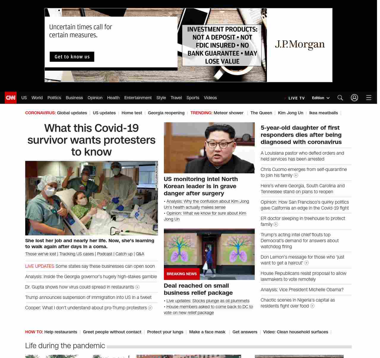 || screaming-banner-text banner-text-size–char-47″ data-analytics=”_list-hierarchical-xs_article_”> What this Covid-19 survivor wants protesters to know ||” , title: “CNN – Breaking News, Latest News and Videos” , siblings: {“articleList”:[{“uri”:”/2020/04/21/us/coronavirus-survivor-response-to-protesters/index.html”,”headline”:”u003cstrong>She lost her job and nearly her life. Now, she’s learning to walk again after days in a coma.u003c/strong>”,”thumbnail”:”//cdn.cnn.com/cnnnext/dam/assets/200421023256-02-leah-blomberg-small-11.jpg”,”duration”:””,”description”:”u003ca href=”https://www.cnn.com/interactive/2020/health/coronavirus-victims-memories/” target=”_blank”>Those we’ve lost u003c/a>| u003ca href=”https://www.cnn.com/interactive/2020/health/coronavirus-us-maps-and-cases/” target=”_blank”>Tracking US casesu003c/a> | u003ca href=”https://www.cnn.com/audio/podcasts/corona-virus” target=”_blank”>Podcastu003c/a> | u003ca href=”https://www.cnn.com/2020/04/20/world/coronavirus-newsletter-04-20-20-intl/index.html” target=”_blank”>Catch upu003c/a> | u003ca href=”http://cnn.com/CoronavirusAnswers” target=”_blank”>Q&Au003c/a>”,”layout”:””