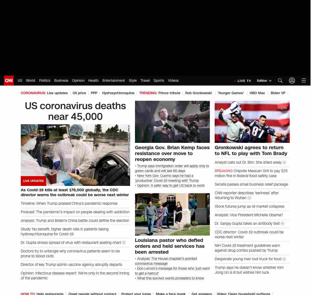 || screaming-banner-text banner-text-size–char-35″ data-analytics=”_list-hierarchical-xs_article_”> US coronavirus deaths near 45,000 ||” , title: “CNN – Breaking News, Latest News and Videos” , siblings: {“articleList”:[{“uri”:”/world/live-news/coronavirus-pandemic-04-22-20-intl/index.html”,”headline”:”u003cstrong>As Covid-19 kills at least 176,000 globally, the CDC director warns the outbreak could be worse next winteru003c/strong>”,”thumbnail”:”//cdn.cnn.com/cnnnext/dam/assets/200420173523-coronavirus-antibody-testing-los-angeles-small-11.jpg”,”duration”:””,”description”:” u003ca href=”https://www.cnn.com/interactive/2020/health/coronavirus-victims-memories/” target=”_blank”>Those we’ve lost u003c/a>| u003ca href=”https://www.cnn.com/interactive/2020/health/coronavirus-us-maps-and-cases/” target=”_blank”>Tracking US casesu003c/a> | u003ca href=”https://www.cnn.com/audio/podcasts/corona-virus” target=”_blank”>Podcastu003c/a> | u003ca href=”https://www.cnn.com/2020/04/20/world/coronavirus-newsletter-04-20-20-intl/index.html” target=”_blank”>Catch upu003c/a> | u003ca href=”http://cnn.com/CoronavirusAnswers” target=”_blank”>Q&Au003c/a>”,”layout”:””