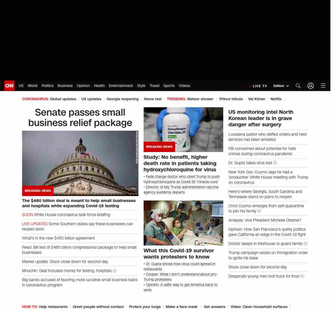 || screaming-banner-text banner-text-size–char-44″ data-analytics=”_list-hierarchical-xs_hyperlink_”> Senate passes small business relief package ||” , title: “CNN – Breaking News, Latest News and Videos” , siblings: {“articleList”:[{“uri”:”/us/live-news/us-coronavirus-update-04-21-20/index.html”,”headline”:”Some states say these businesses can open soon”,”thumbnail”:”//cdn.cnn.com/cnnnext/dam/assets/200421115136-seattle-pedestrian-closed-business-0414-small-11.jpg”,”duration”:””,”description”:””,”layout”:””