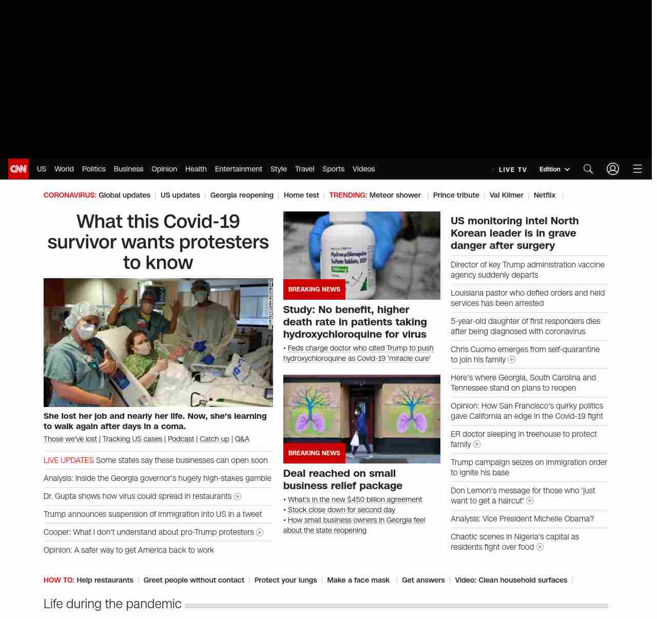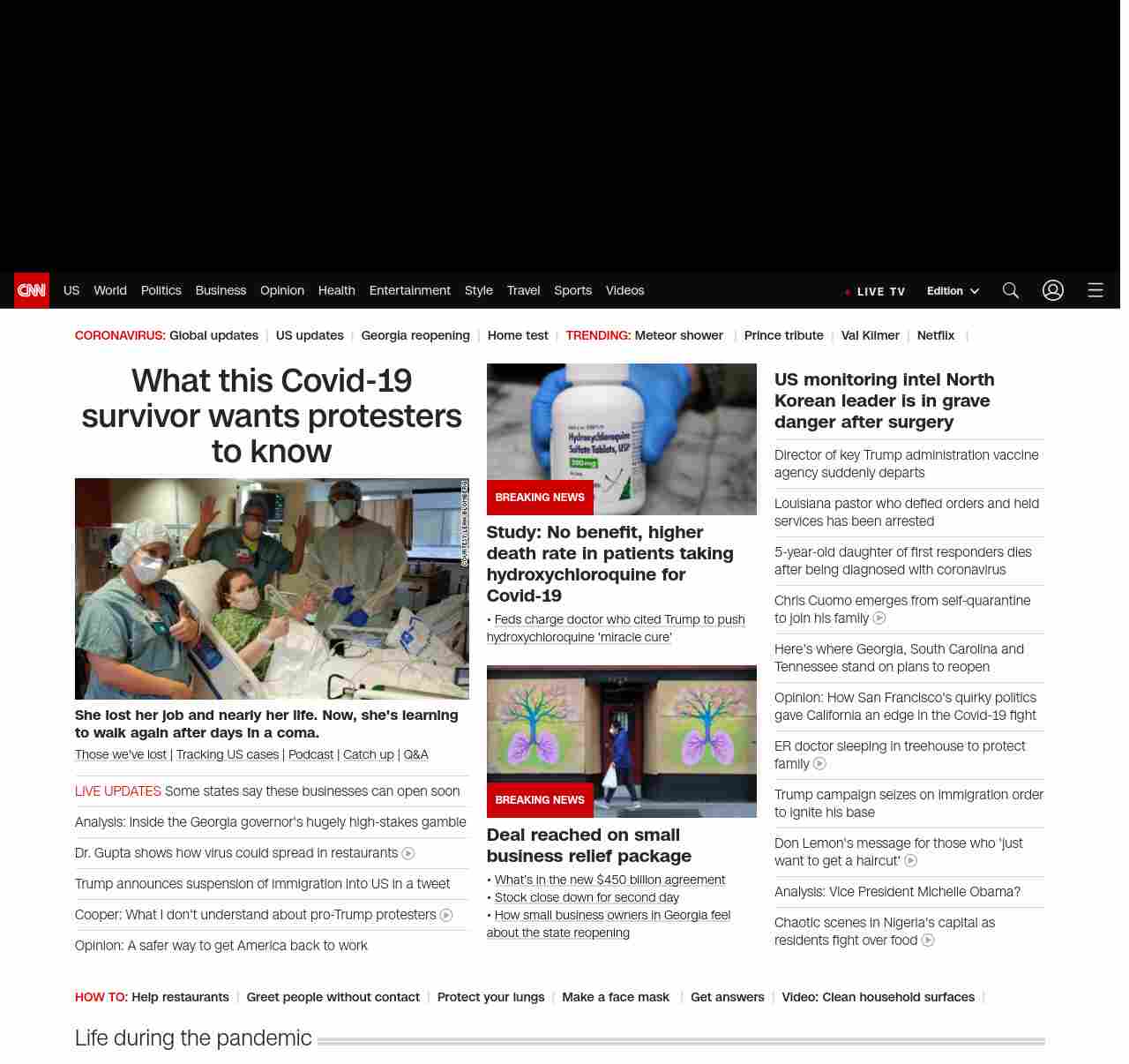 || screaming-banner-text banner-text-size–char-47″ data-analytics=”_list-hierarchical-xs_article_”> What this Covid-19 survivor wants protesters to know ||” , title: “CNN – Breaking News, Latest News and Videos” , siblings: {“articleList”:[{“uri”:”/2020/04/21/us/coronavirus-survivor-response-to-protesters/index.html”,”headline”:”u003cstrong>She lost her job and nearly her life. Now, she’s learning to walk again after days in a coma.u003c/strong>”,”thumbnail”:”//cdn.cnn.com/cnnnext/dam/assets/200421023256-02-leah-blomberg-small-11.jpg”,”duration”:””,”description”:”u003ca href=”https://www.cnn.com/interactive/2020/health/coronavirus-victims-memories/” target=”_blank”>Those we’ve lost u003c/a>| u003ca href=”https://www.cnn.com/interactive/2020/health/coronavirus-us-maps-and-cases/” target=”_blank”>Tracking US casesu003c/a> | u003ca href=”https://www.cnn.com/audio/podcasts/corona-virus” target=”_blank”>Podcastu003c/a> | u003ca href=”https://www.cnn.com/2020/04/20/world/coronavirus-newsletter-04-20-20-intl/index.html” target=”_blank”>Catch upu003c/a> | u003ca href=”http://cnn.com/CoronavirusAnswers” target=”_blank”>Q&Au003c/a>”,”layout”:””