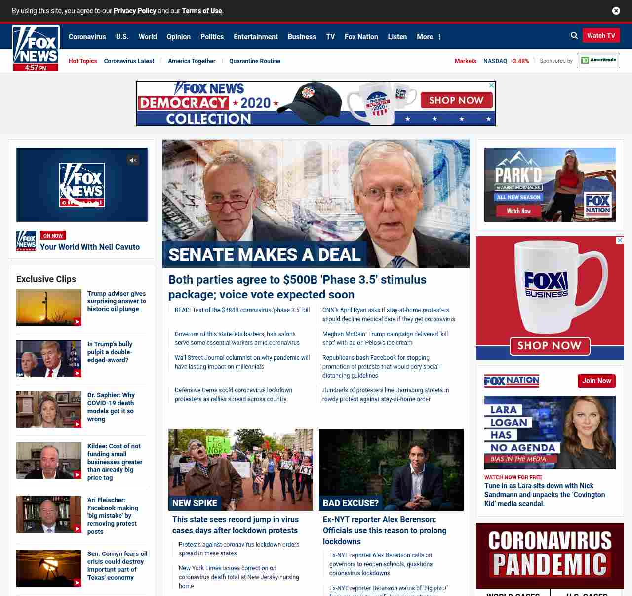 =”https://www.foxnews.com/politics/senate-leaders-reach-agreement-phase-3-5-coronavirus-stimulus-package“>Both parties agree to $500B ‘Phase 3.5’ stimulus package; voice vote expected soon