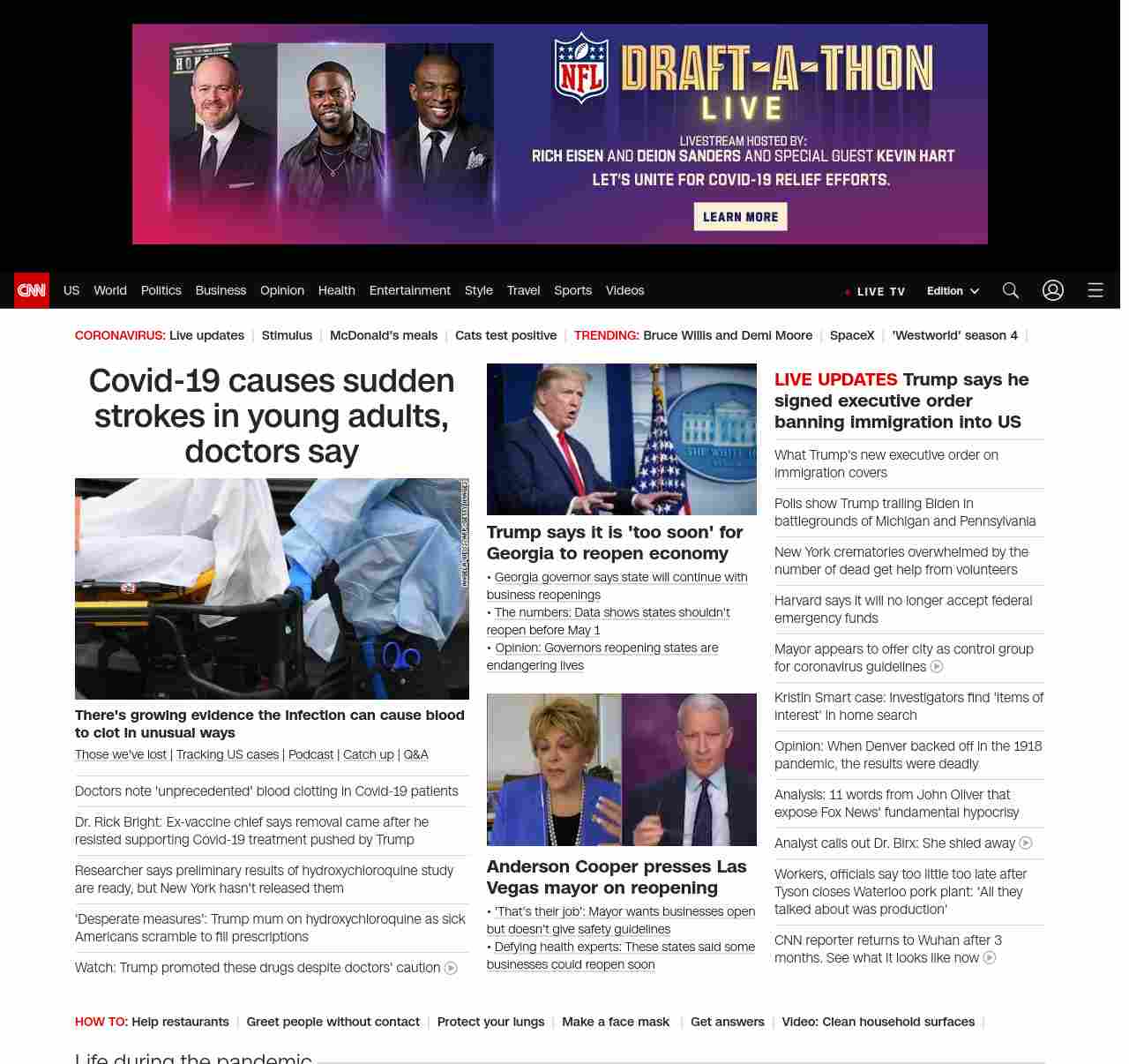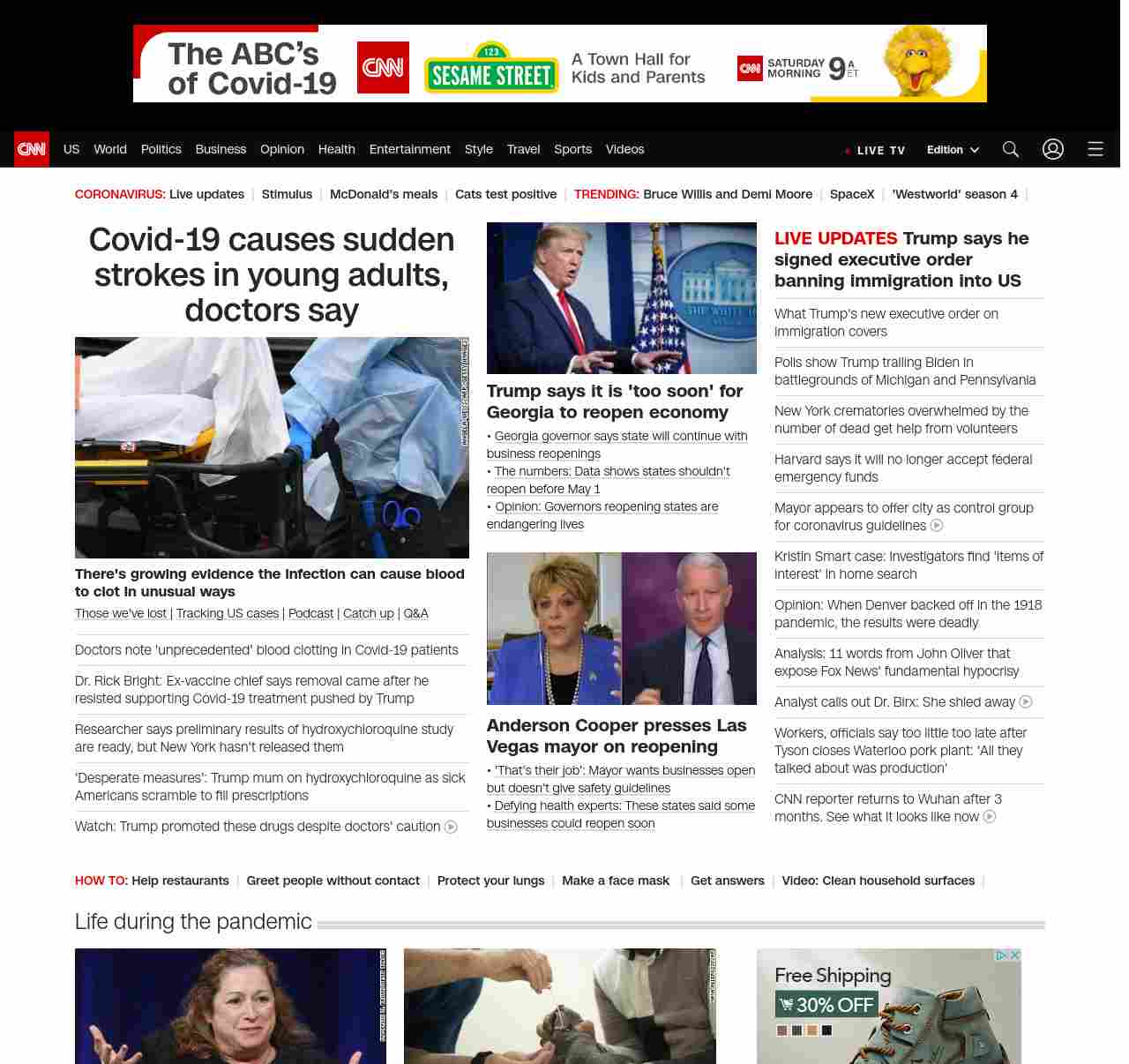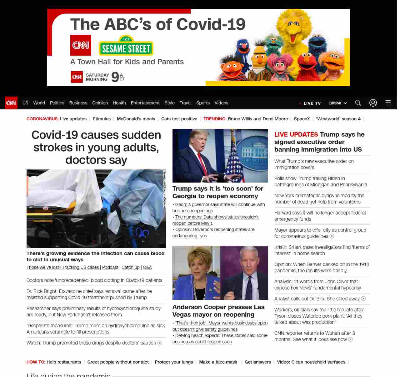 || screaming-banner-text banner-text-size–char-47″ data-analytics=”_list-hierarchical-xs_article_”> Covid-19 causes sudden strokes in young adults, doctors say ||” , title: “CNN – Breaking News, Latest News and Videos” , siblings: {“articleList”:[{“uri”:”/2020/04/22/health/strokes-coronavirus-young-adults/index.html”,”headline”:”u003cstrong>There’s growing evidence the infection can cause blood to clot in unusual waysu003c/strong>”,”thumbnail”:”//cdn.cnn.com/cnnnext/dam/assets/200407115136-emergency-room-workers-coronavirus-small-11.jpg”,”duration”:””,”description”:” u003ca href=”https://www.cnn.com/interactive/2020/health/coronavirus-victims-memories/” target=”_blank”>Those we’ve lost u003c/a>| u003ca href=”https://www.cnn.com/interactive/2020/health/coronavirus-us-maps-and-cases/” target=”_blank”>Tracking US casesu003c/a> | u003ca href=”https://www.cnn.com/audio/podcasts/corona-virus” target=”_blank”>Podcastu003c/a> | u003ca href=”http://www.cnn.com/2020/04/22/world/coronavirus-newsletter-04-22-20-intl/index.html” target=”_blank”>Catch upu003c/a> | u003ca href=”http://cnn.com/CoronavirusAnswers” target=”_blank”>Q&Au003c/a>”,”layout”:””