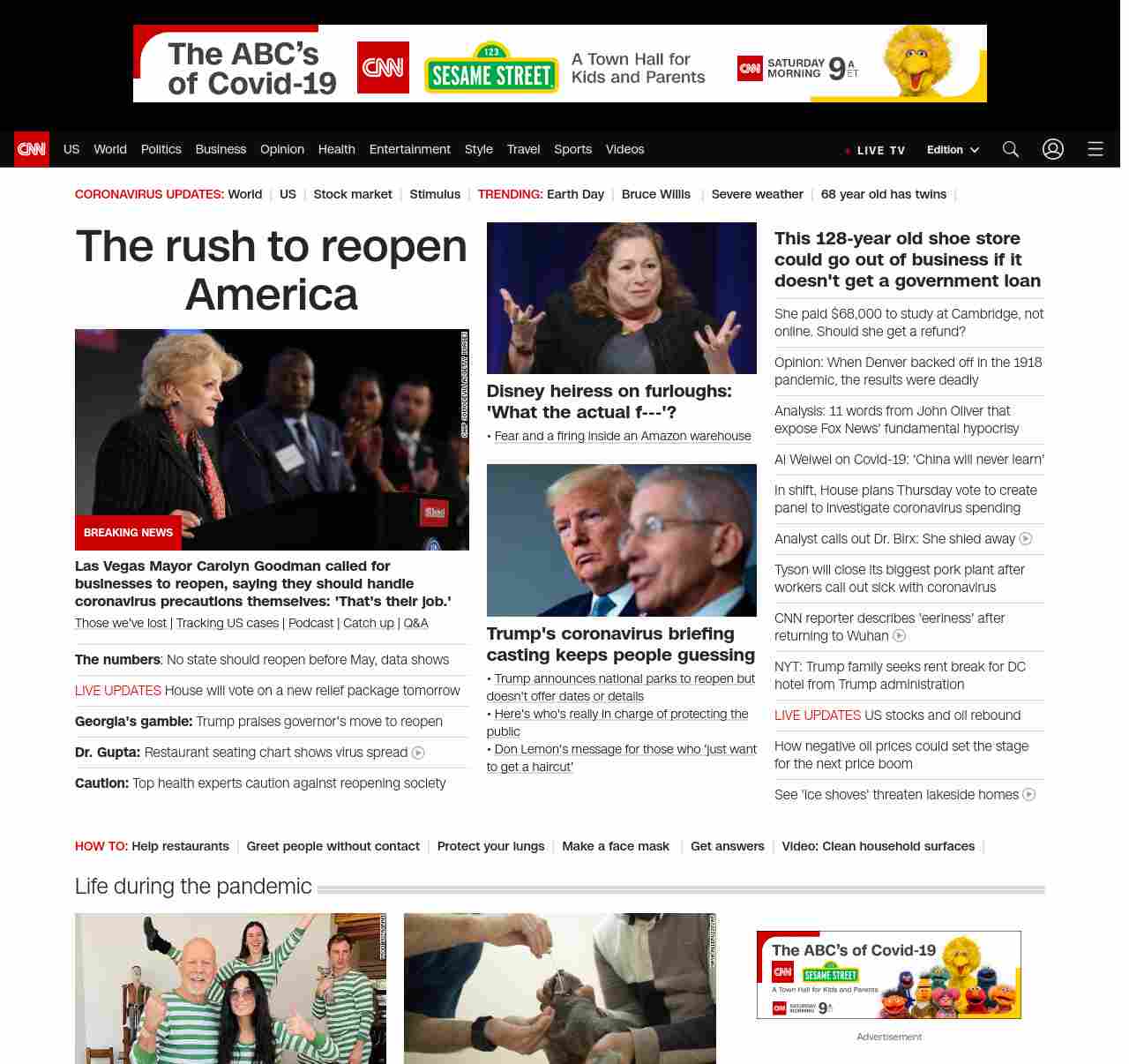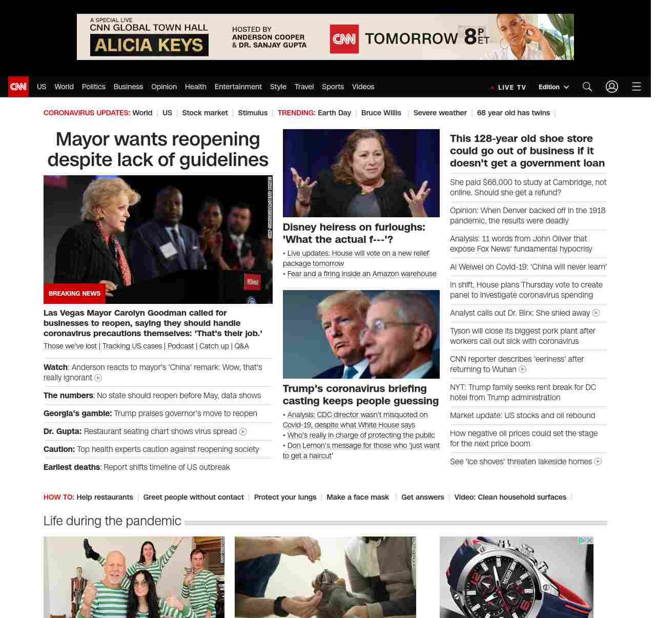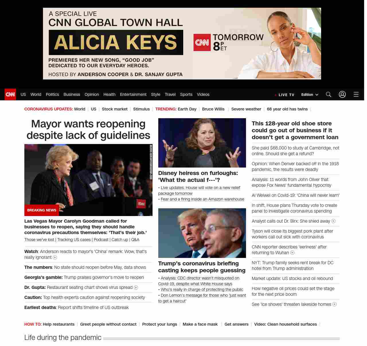|| screaming-banner-text banner-text-size–char-47″ data-analytics=”_list-hierarchical-xs_article_”> No state should reopen before May, data shows ||” , title: “CNN – Breaking News, Latest News and Videos” , siblings: {“articleList”:[{“uri”:”/2020/04/22/politics/las-vegas-mayor-social-distancing-cnntv/index.html”,”headline”:”u003cstrong>Las Vegas Mayor Carolyn Goodman called for businesses to reopen, saying they should handle coronavirus precautions themselves: ‘That’s their job.’u003c/strong>”,”thumbnail”:”//cdn.cnn.com/cnnnext/dam/assets/200422141042-carolyn-goodman-small-11.jpg”,”duration”:””,”description”:” u003ca href=”https://www.cnn.com/interactive/2020/health/coronavirus-victims-memories/” target=”_blank”>Those we’ve lost u003c/a>| u003ca href=”https://www.cnn.com/interactive/2020/health/coronavirus-us-maps-and-cases/” target=”_blank”>Tracking US casesu003c/a> | u003ca href=”https://www.cnn.com/audio/podcasts/corona-virus” target=”_blank”>Podcastu003c/a> | u003ca href=”http://www.cnn.com/2020/04/22/world/coronavirus-newsletter-04-22-20-intl/index.html” target=”_blank”>Catch upu003c/a> | u003ca href=”http://cnn.com/CoronavirusAnswers” target=”_blank”>Q&Au003c/a>”,”layout”:””