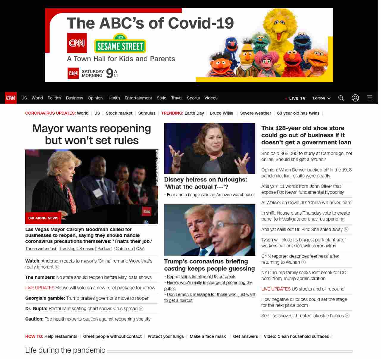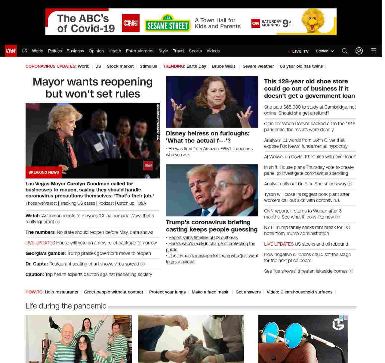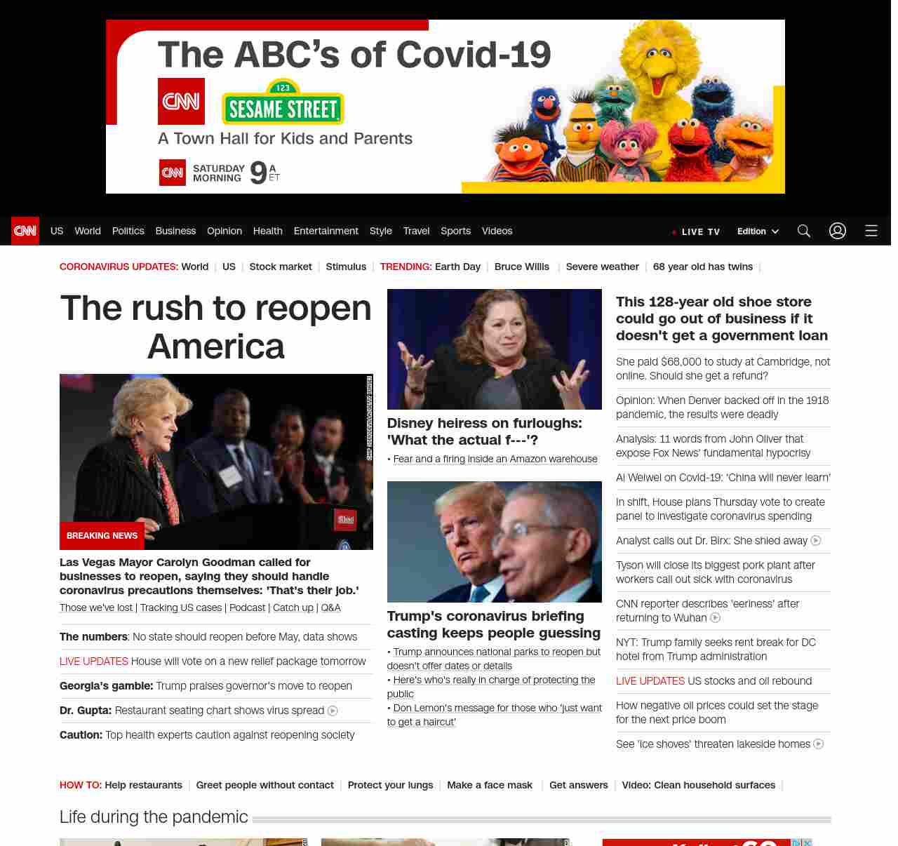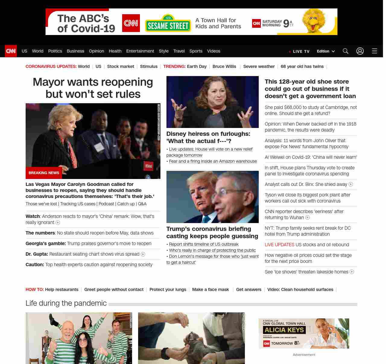 || screaming-banner-text banner-text-size–char-47″ data-analytics=”_list-hierarchical-xs_article_”> No state should reopen before May, data shows ||” , title: “CNN – Breaking News, Latest News and Videos” , siblings: {“articleList”:[{“uri”:”/2020/04/22/politics/las-vegas-mayor-social-distancing-cnntv/index.html”,”headline”:”u003cstrong>Las Vegas Mayor Carolyn Goodman called for businesses to reopen, saying they should handle coronavirus precautions themselves: ‘That’s their job.’u003c/strong>”,”thumbnail”:”//cdn.cnn.com/cnnnext/dam/assets/200422141042-carolyn-goodman-small-11.jpg”,”duration”:””,”description”:” u003ca href=”https://www.cnn.com/interactive/2020/health/coronavirus-victims-memories/” target=”_blank”>Those we’ve lost u003c/a>| u003ca href=”https://www.cnn.com/interactive/2020/health/coronavirus-us-maps-and-cases/” target=”_blank”>Tracking US casesu003c/a> | u003ca href=”https://www.cnn.com/audio/podcasts/corona-virus” target=”_blank”>Podcastu003c/a> | u003ca href=”http://www.cnn.com/2020/04/22/world/coronavirus-newsletter-04-22-20-intl/index.html” target=”_blank”>Catch upu003c/a> | u003ca href=”http://cnn.com/CoronavirusAnswers” target=”_blank”>Q&Au003c/a>”,”layout”:””