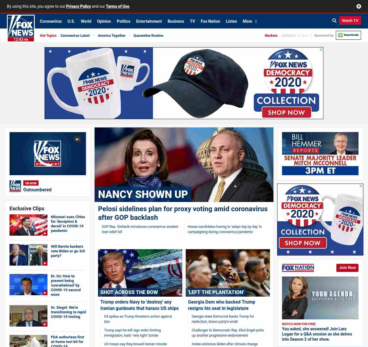 FN: [[NANCY SHOWN UP]] Pelosi sidelines plan for proxy voting amid coronavirus after GOP backlash ((lubuntu at wor2))