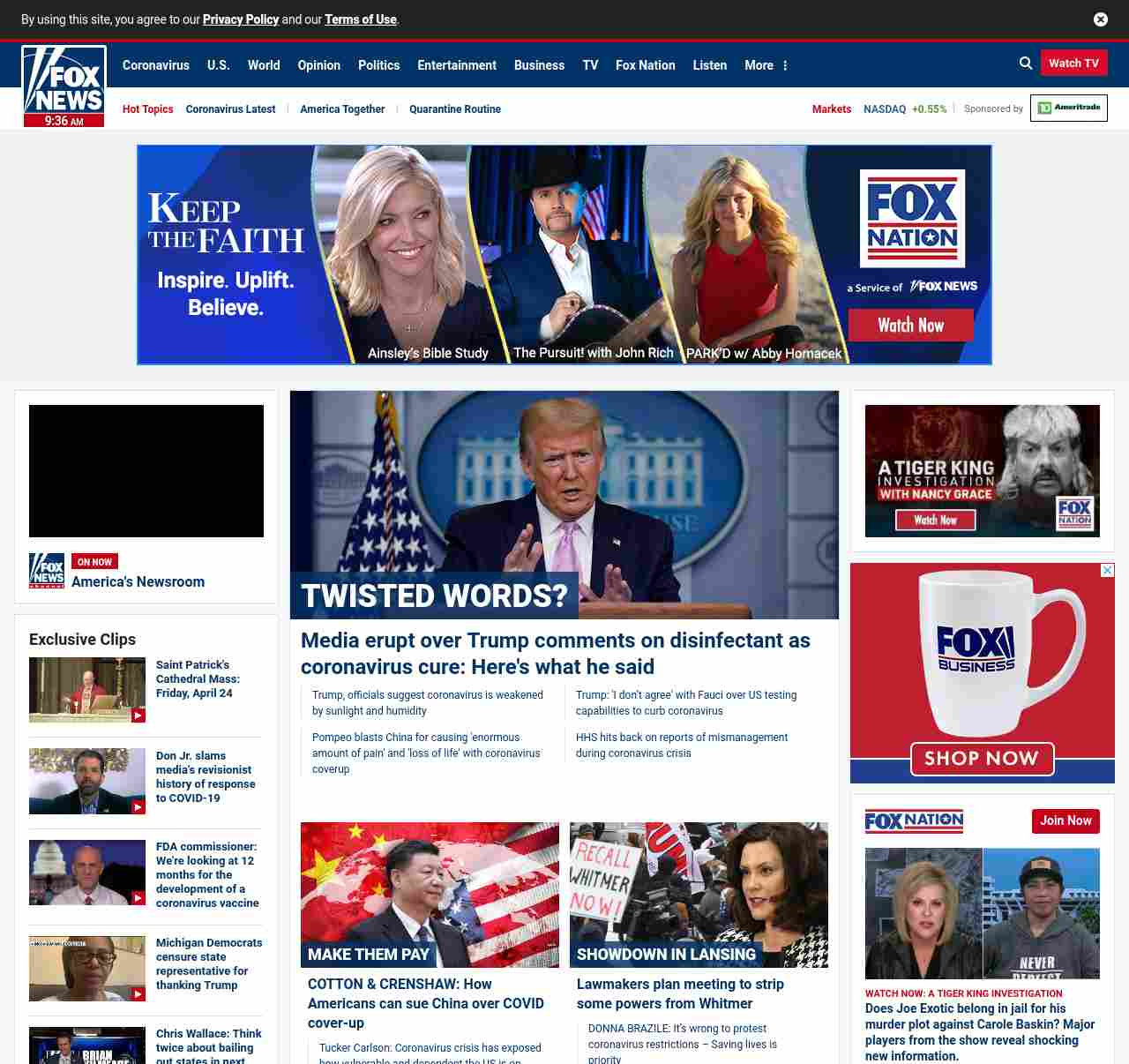 FN: [[TWISTED WORDS?]] Media erupt over Trump comments on disinfectant as coronavirus cure: Here' s what he said ((lubuntu at wor2))