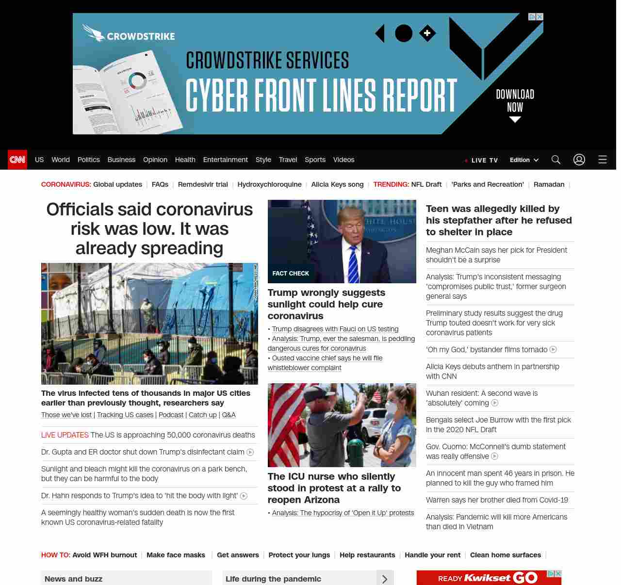 || screaming-banner-text banner-text-size–char-47″ data-analytics=”_list-hierarchical-xs_article_”> Officials said coronavirus risk was low. It was already spreading ||” , title: “CNN – Breaking News, Latest News and Videos” , siblings: {“articleList”:[{“uri”:”/2020/04/24/health/us-coronavirus-friday/index.html”,”headline”:”u003cstrong>The virus infected tens of thousands u003c/strong>u003cstrong>in major US cities earlier than previously thought, researchers sayu003c/strong>”,”thumbnail”:”//cdn.cnn.com/cnnnext/dam/assets/200424021025-new-york-coronavirus-0327-small-11.jpg”,”duration”:””,”description”:” u003ca href=”https://www.cnn.com/interactive/2020/health/coronavirus-victims-memories/” target=”_blank”>Those we’ve lost u003c/a>| u003ca href=”https://www.cnn.com/interactive/2020/health/coronavirus-us-maps-and-cases/” target=”_blank”>Tracking US casesu003c/a> | u003ca href=”https://www.cnn.com/audio/podcasts/corona-virus” target=”_blank”>Podcastu003c/a> | u003ca href=”https://www.cnn.com/2020/04/23/world/coronavirus-newsletter-04-23-20-intl/index.html” target=”_blank”>Catch upu003c/a> | u003ca href=”http://cnn.com/CoronavirusAnswers” target=”_blank”>Q&Au003c/a>”,”layout”:””