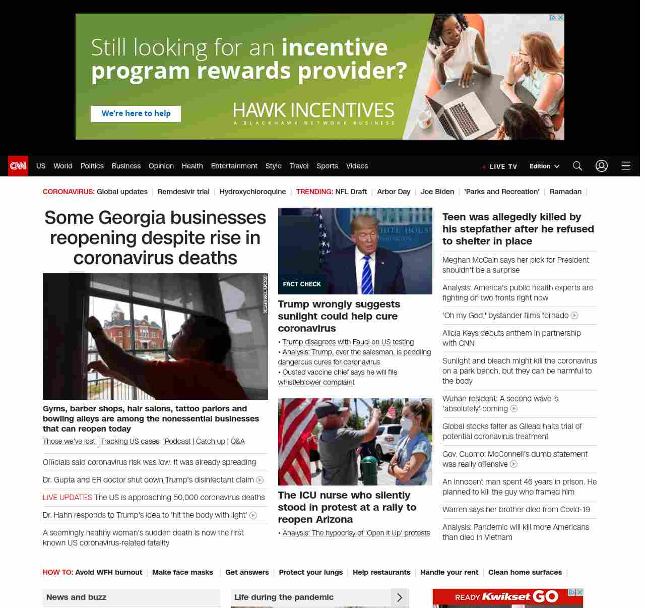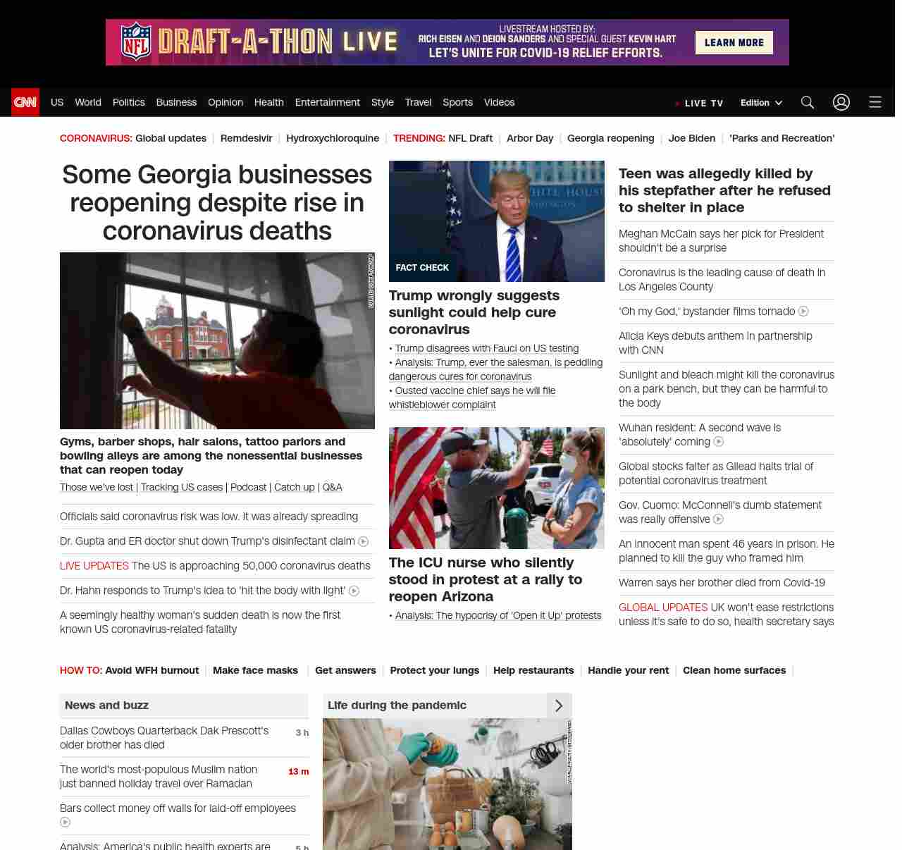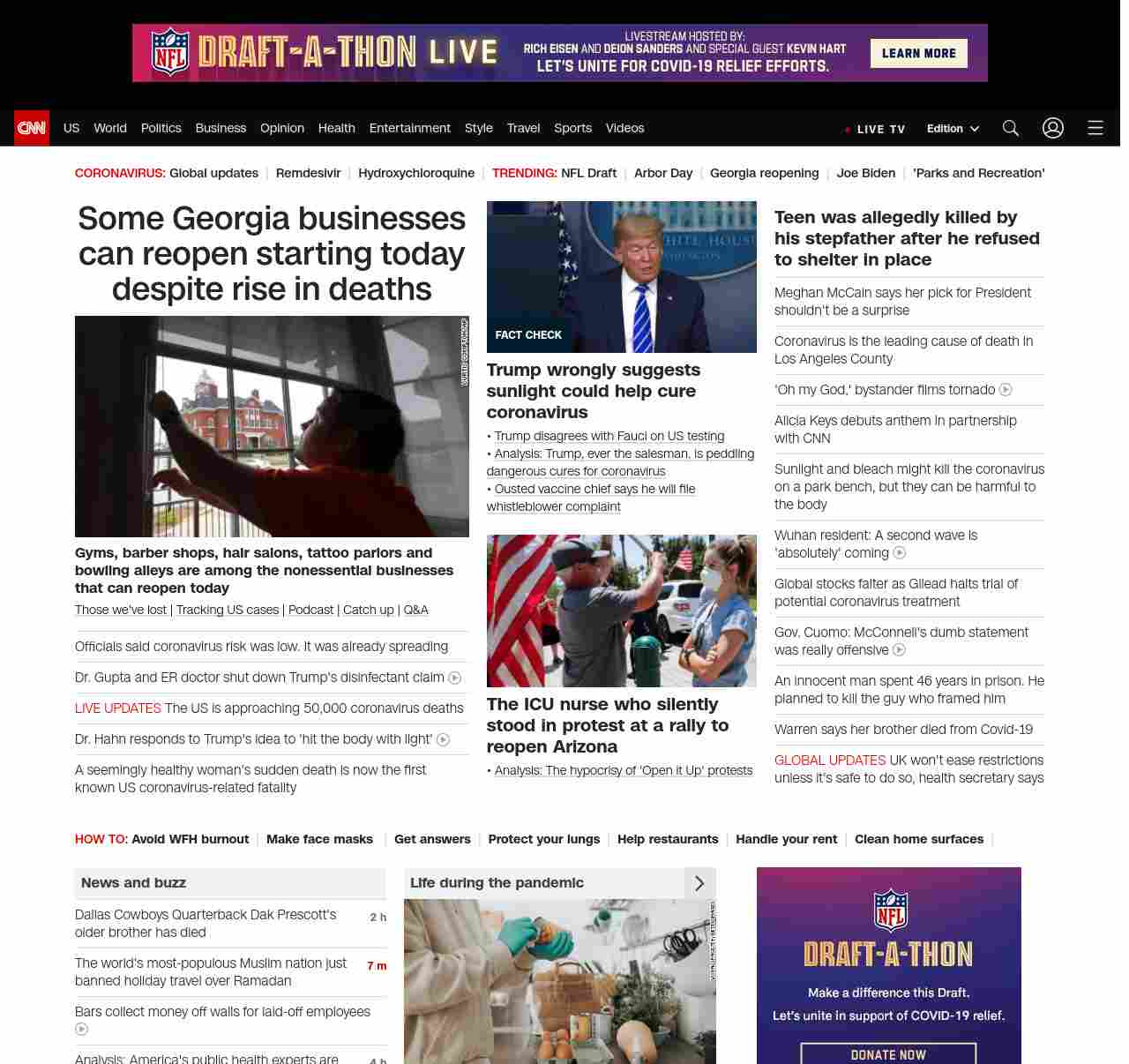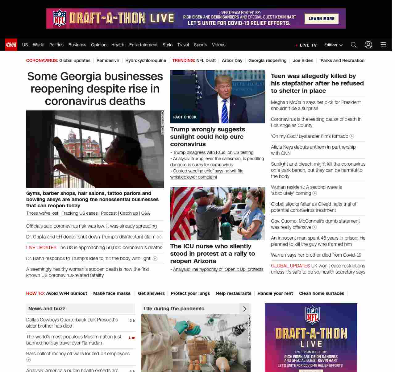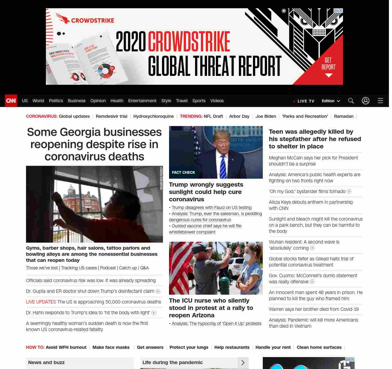 CNN1: FOXVCNN=|Some Georgia businesses reopening despite rise in coronavirus deaths| ((lubuntu at wor2))