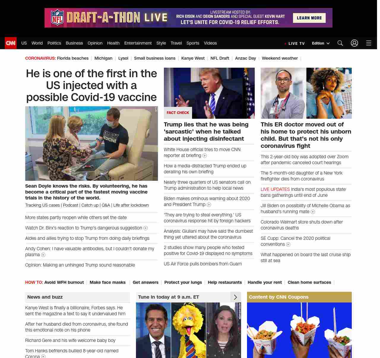 || screaming-banner-text banner-text-size–char-47″ data-analytics=”_list-hierarchical-xs_article_”> He is one of the first in the US injected with a possible Covid-19 vaccine ||” , title: “CNN – Breaking News, Latest News and Videos” , siblings: {“articleList”:[{“uri”:”/2020/04/24/health/coronavirus-vaccine-speed-sanjay-gupta/index.html”,”headline”:”u003cstrong>Sean Doyle knows the risks. By volunteering, he has become a critical part of the fastest moving vaccine trials in the history of the world.u003c/strong>”,”thumbnail”:”//cdn.cnn.com/cnnnext/dam/assets/200424203023-gupta-dnt-vaccine-trial-small-11.jpg”,”duration”:””,”description”:”u003ca href=”https://www.cnn.com/interactive/2020/health/coronavirus-us-maps-and-cases/” target=”_blank”>Tracking US casesu003c/a> | u003ca href=”https://www.cnn.com/audio/podcasts/corona-virus” target=”_blank”>Podcastu003c/a> | u003ca href=”https://www.cnn.com/2020/04/25/world/coronavirus-newsletter-04-25-20-intl/index.html” target=”_blank”>Catch upu003c/a> | u003ca href=”http://cnn.com/CoronavirusAnswers” target=”_blank”>Q&Au003c/a> | u003ca href=”https://www.cnn.com/2020/04/24/world/gallery/coronavirus-after-lockdown/index.html” target=”_blank”>Life after lockdownu003c/a>”,”layout”:””