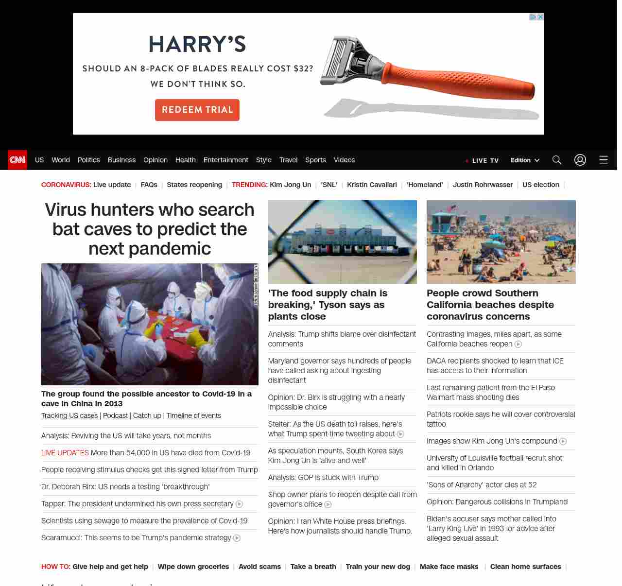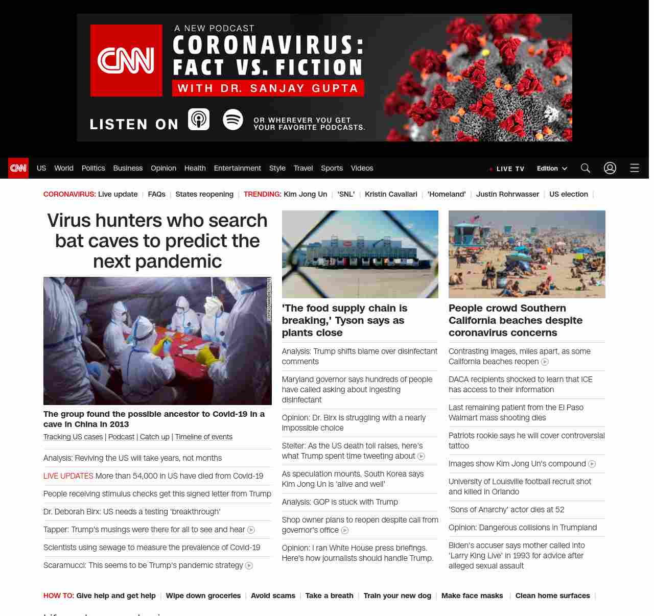 || screaming-banner-text banner-text-size–char-47″ data-analytics=”_list-hierarchical-xs_article_”> Virus hunters who search bat caves to predict the next pandemic ||” , title: “CNN – Breaking News, Latest News and Videos” , siblings: {“articleList”:[{“uri”:”/2020/04/26/health/virus-hunters-bat-cave-coronavirus-hnk-intl/index.html”,”headline”:”u003cstrong>The group found the possible ancestor to Covid-19 in a cave in China in 2013u003c/strong>”,”thumbnail”:”//cdn.cnn.com/cnnnext/dam/assets/200424154633-virus-hunter–virus-1-small-11.jpg”,”duration”:””,”description”:”u003ca href=”https://www.cnn.com/interactive/2020/health/coronavirus-us-maps-and-cases/” target=”_blank”>Tracking US casesu003c/a> | u003ca href=”https://www.cnn.com/audio/podcasts/corona-virus” target=”_blank”>Podcastu003c/a> |u003ca href=”https://www.cnn.com/2020/04/26/world/coronavirus-newsletter-04-26-20-intl/index.html” target=”_blank”> Catch upu003c/a> | u003ca href=”https://www.cnn.com/interactive/2020/health/covid19-pandemic-video-timeline/index.html” target=”_blank”>Timeline of eventsu003c/a> “,”layout”:””