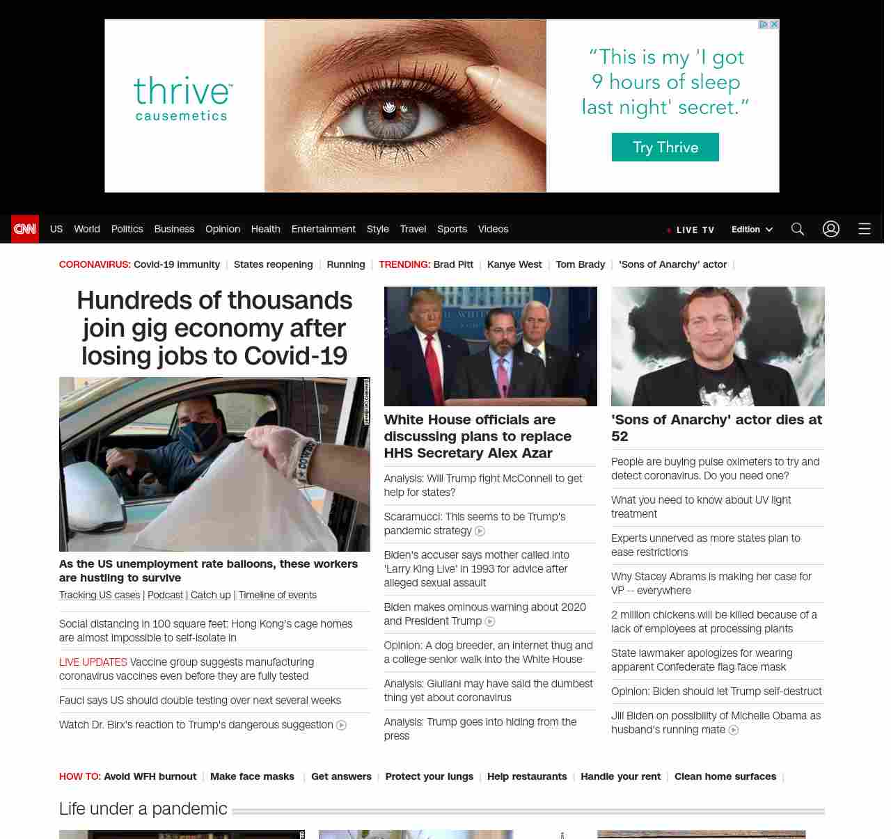 || screaming-banner-text banner-text-size–char-47″ data-analytics=”_list-hierarchical-xs_article_”> Hundreds of thousands join gig economy after losing jobs to Covid-19 ||” , title: “CNN – Breaking News, Latest News and Videos” , siblings: {“articleList”:[{“uri”:”/2020/04/26/us/gig-workers-informal-jobs-coronavirus/index.html”,”headline”:”u003cstrong>As the US unemployment rate balloons, these workers are hustling to surviveu003c/strong>”,”thumbnail”:”//cdn.cnn.com/cnnnext/dam/assets/200423230851-01-gig-economy-small-11.jpg”,”duration”:””,”description”:”u003ca href=”https://www.cnn.com/interactive/2020/health/coronavirus-us-maps-and-cases/” target=”_blank”>Tracking US casesu003c/a> | u003ca href=”https://www.cnn.com/audio/podcasts/corona-virus” target=”_blank”>Podcastu003c/a> |u003ca href=”https://www.cnn.com/2020/04/25/world/coronavirus-newsletter-04-25-20-intl/index.html” target=”_blank”> Catch upu003c/a> | u003ca href=”https://www.cnn.com/interactive/2020/health/covid19-pandemic-video-timeline/index.html” target=”_blank”>Timeline of eventsu003c/a>”,”layout”:””