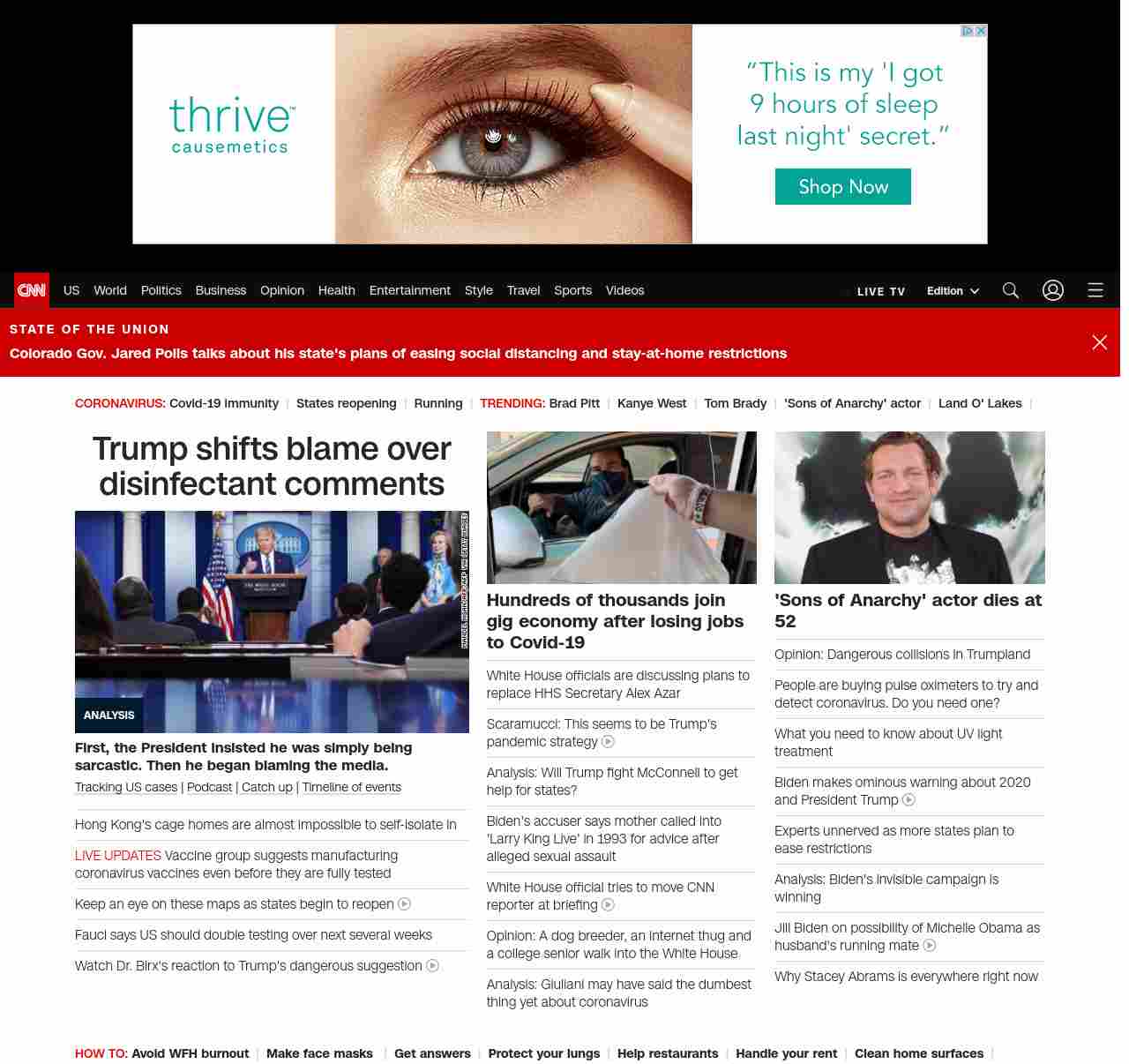 CNN1: FOXVCNN=|Trump shifts blame over disinfectant comments| ((lubuntu at wor2))
