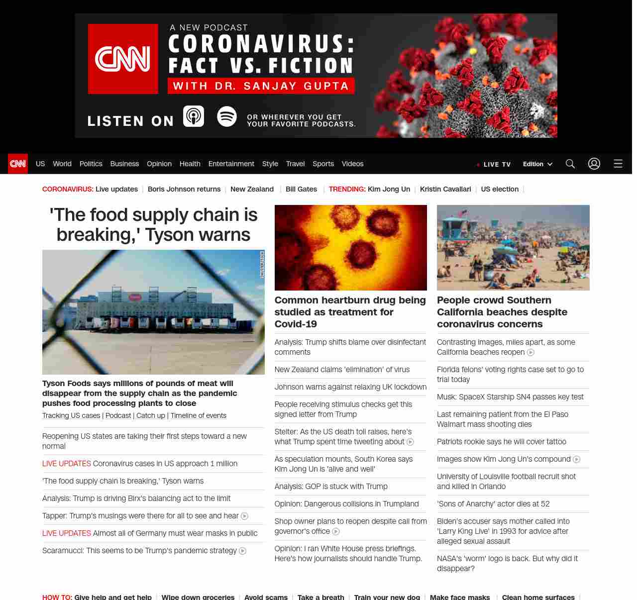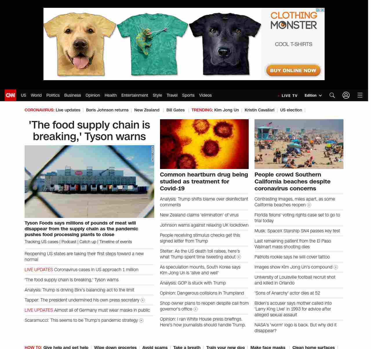|| screaming-banner-text banner-text-size–char-47″ data-analytics=”_list-hierarchical-xs_article_”> ‘The food supply chain is breaking,’ Tyson warns ||” , title: “CNN – Breaking News, Latest News and Videos” , siblings: {“articleList”:[{“uri”:”/2020/04/26/business/tyson-foods-nyt-ad/index.html”,”headline”:”u003cstrong>Tyson Foods says millions of pounds of meat will disappear from the supply chain as the pandemic pushes food processing plants to closeu003c/strong>”,”thumbnail”:”//cdn.cnn.com/cnnnext/dam/assets/200426210106-tyson-processing-plant-file-small-11.jpg”,”duration”:””,”description”:”u003ca href=”https://www.cnn.com/interactive/2020/health/coronavirus-us-maps-and-cases/” target=”_blank”>Tracking US casesu003c/a> | u003ca href=”https://www.cnn.com/audio/podcasts/corona-virus” target=”_blank”>Podcastu003c/a> |u003ca href=”https://www.cnn.com/2020/04/26/world/coronavirus-newsletter-04-26-20-intl/index.html” target=”_blank”> Catch upu003c/a> | u003ca href=”https://www.cnn.com/interactive/2020/health/covid19-pandemic-video-timeline/index.html” target=”_blank”>Timeline of eventsu003c/a> “,”layout”:””