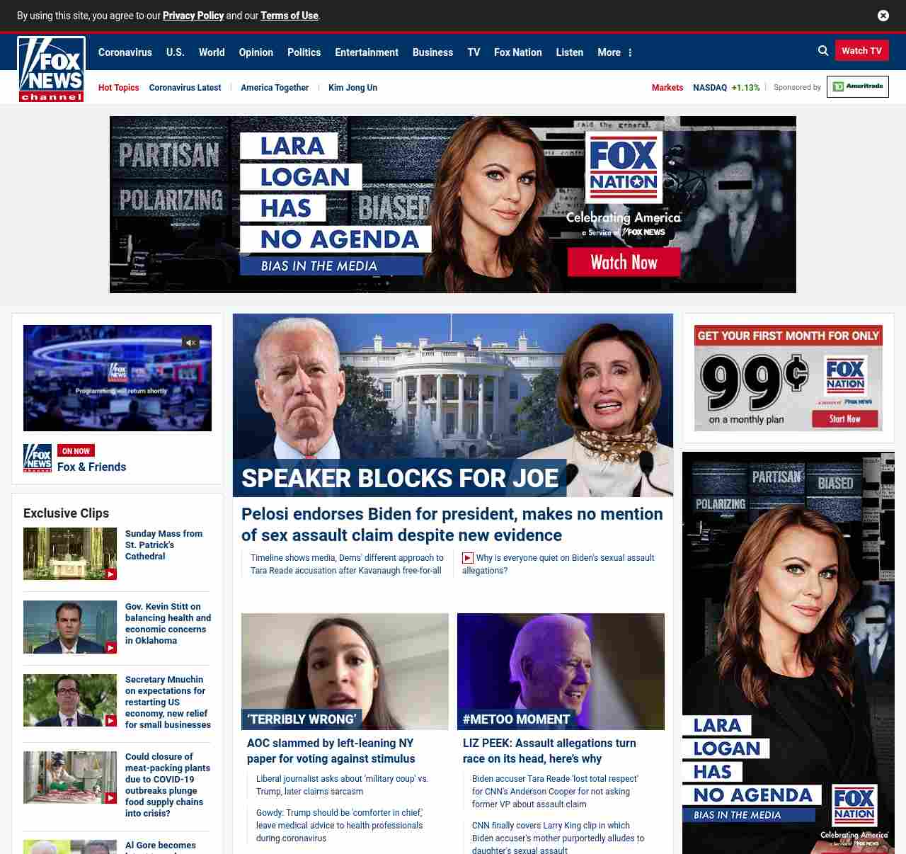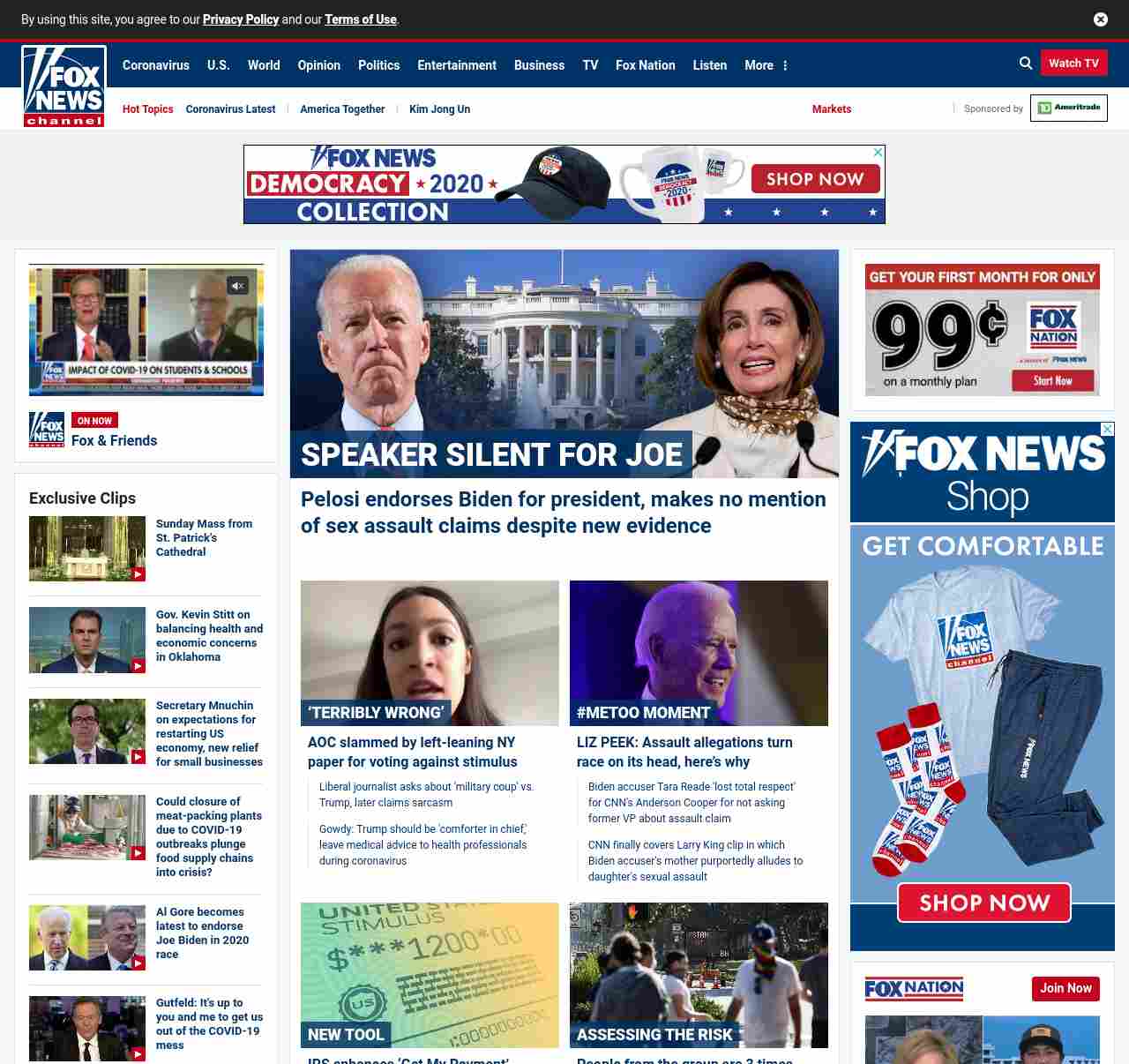 FN: [[SPEAKER SILENT FOR JOE]] Pelosi endorses Biden for president, makes no mention of sex assault claims despite new evidence ((lubuntu at wor2))
