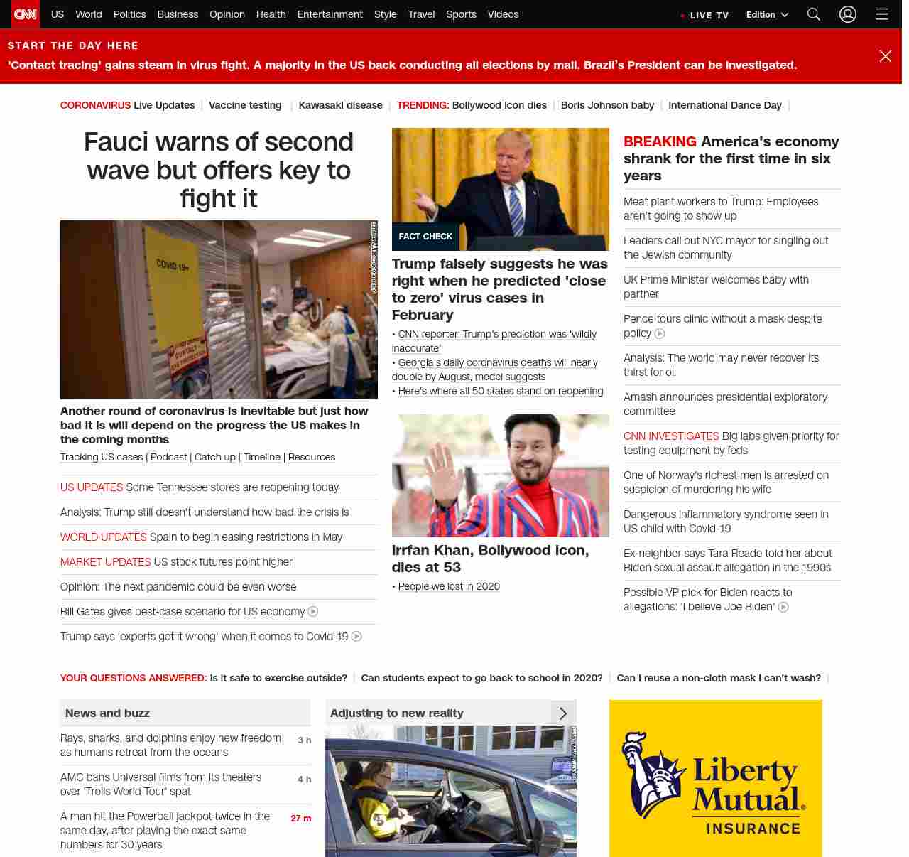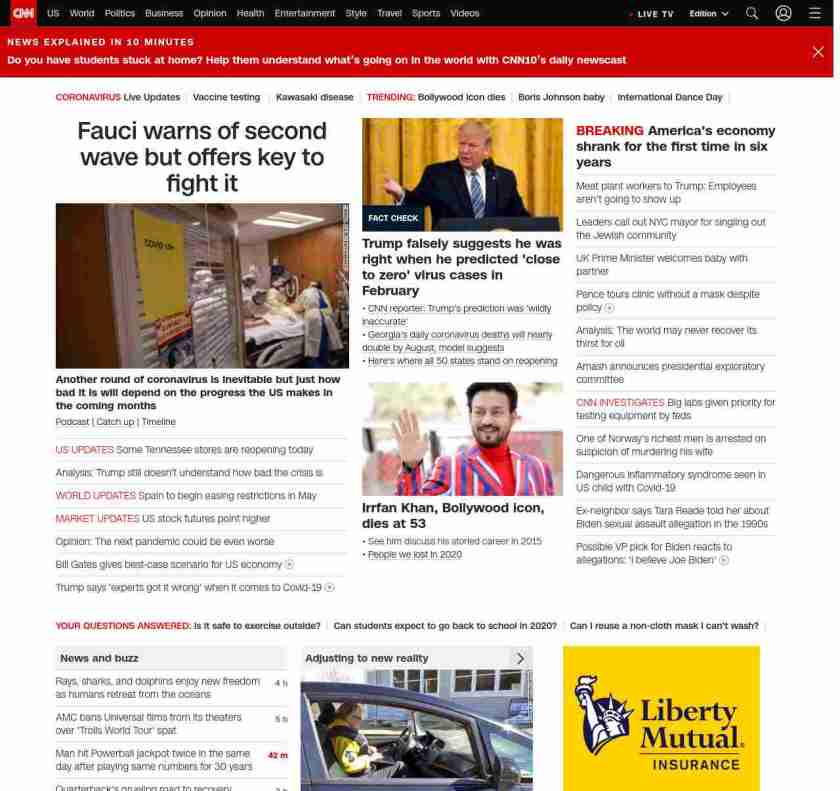 || screaming-banner-text banner-text-size–char-47″ data-analytics=”_list-hierarchical-xs_article_”> Fauci warns of second wave but offers key to fight it ||” , title: “CNN – Breaking News, Latest News and Videos” , siblings: {“articleList”:[{“uri”:”/2020/04/29/health/us-coronavirus-wednesday/index.html”,”headline”:”u003cstrong>Another round of coronavirus is inevitable but just how bad it is will depend on the progress the US makes in the coming monthsu003c/strong>”,”thumbnail”:”//cdn.cnn.com/cnnnext/dam/assets/200429084538-03-fauci-second-wave-coronavirus-small-11.jpg”,”duration”:””,”description”:”u003ca href=”https://www.cnn.com/interactive/2020/health/coronavirus-us-maps-and-cases/” target=”_blank”>Tracking US casesu003c/a> | u003ca href=”https://www.cnn.com/audio/podcasts/corona-virus” target=”_blank”>Podcastu003c/a> |u003ca href=”https://www.cnn.com/2020/04/28/world/coronavirus-newsletter-04-28-20-intl/index.html” target=”_blank”> Catch upu003c/a> | u003ca href=”https://www.cnn.com/interactive/2020/health/covid19-pandemic-video-timeline/index.html” target=”_blank”>Timelineu003c/a> | u003ca href=”https://www.cnn.com/resources/coronavirus-information” target=”_blank”>Resourcesu003c/a>”,”layout”:””