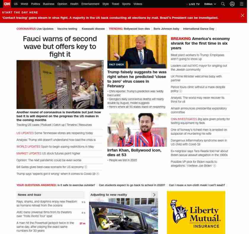 || screaming-banner-text banner-text-size–char-47″ data-analytics=”_list-hierarchical-xs_article_”> Fauci warns of second wave but offers key to fight it ||” , title: “CNN – Breaking News, Latest News and Videos” , siblings: {“articleList”:[{“uri”:”/2020/04/29/health/us-coronavirus-wednesday/index.html”,”headline”:”u003cstrong>Another round of coronavirus is inevitable but just how bad it is will depend on the progress the US makes in the coming monthsu003c/strong>”,”thumbnail”:”//cdn.cnn.com/cnnnext/dam/assets/200429084538-03-fauci-second-wave-coronavirus-small-11.jpg”,”duration”:””,”description”:”u003ca href=”https://www.cnn.com/audio/podcasts/corona-virus” target=”_blank”>Podcastu003c/a> |u003ca href=”https://www.cnn.com/2020/04/28/world/coronavirus-newsletter-04-28-20-intl/index.html” target=”_blank”> Catch upu003c/a> | u003ca href=”https://www.cnn.com/interactive/2020/health/covid19-pandemic-video-timeline/index.html” target=”_blank”>Timelineu003c/a>”,”layout”:””