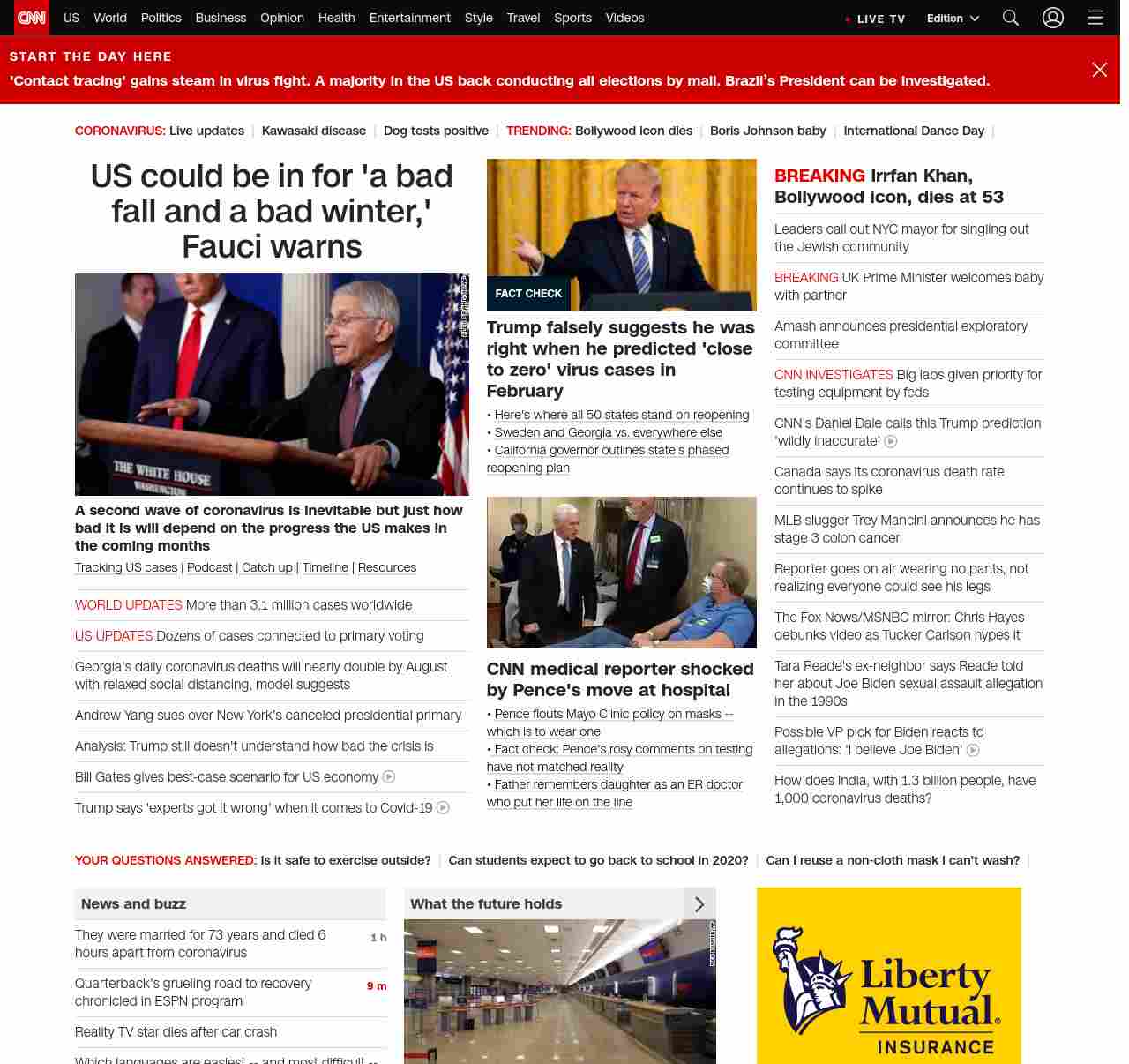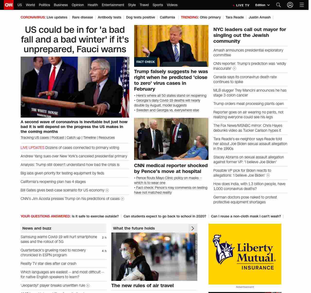 || screaming-banner-text banner-text-size–char-47″ data-analytics=”_list-hierarchical-xs_article_”> US could be in for ‘a bad fall and a bad winter’ if it’s unprepared, Fauci warns ||” , title: “CNN – Breaking News, Latest News and Videos” , siblings: {“articleList”:[{“uri”:”/2020/04/29/health/us-coronavirus-wednesday/index.html”,”headline”:”u003cstrong>A second wave of coronavirus is inevitable but just how bad it is will depend on the progress the US makes in the coming monthsu003c/strong>”,”thumbnail”:”//cdn.cnn.com/cnnnext/dam/assets/200429020146-01-us-coronavirus-0429-small-11.jpg”,”duration”:””,”description”:”u003ca href=”https://www.cnn.com/interactive/2020/health/coronavirus-us-maps-and-cases/” target=”_blank”>Tracking US casesu003c/a> | u003ca href=”https://www.cnn.com/audio/podcasts/corona-virus” target=”_blank”>Podcastu003c/a> |u003ca href=”https://www.cnn.com/2020/04/28/world/coronavirus-newsletter-04-28-20-intl/index.html” target=”_blank”> Catch upu003c/a> | u003ca href=”https://www.cnn.com/interactive/2020/health/covid19-pandemic-video-timeline/index.html” target=”_blank”>Timelineu003c/a> | u003ca href=”https://www.cnn.com/resources/coronavirus-information” target=”_blank”>Resourcesu003c/a>”,”layout”:””