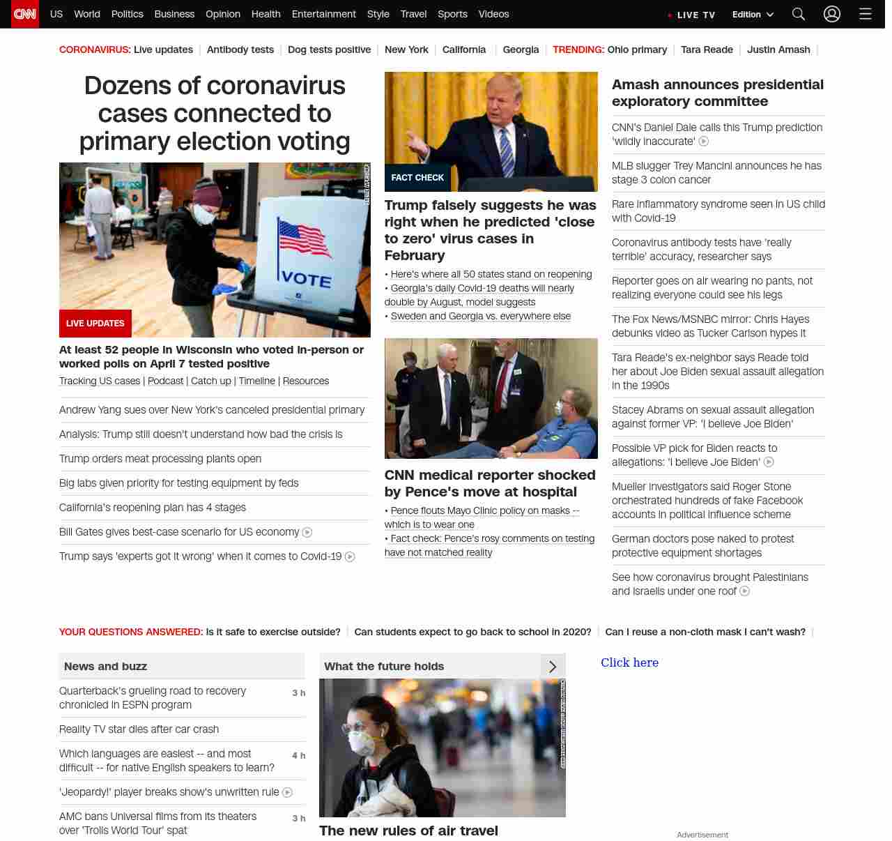 || screaming-banner-text banner-text-size–char-47″ data-analytics=”_list-hierarchical-xs_hyperlink_”> Dozens of coronavirus cases connected to primary election voting ||” , title: “CNN – Breaking News, Latest News and Videos” , siblings: {“articleList”:[{“uri”:”/2020/04/28/politics/andrew-yang-new-york-presidential-primary/index.html”,”headline”:”Andrew Yang sues over New York’s canceled presidential primary”,”thumbnail”:”//cdn.cnn.com/cnnnext/dam/assets/200131114119-101-andrew-yang-lead-image-small-11.jpg”,”duration”:””,”description”:”Former Democratic presidential candidate u003ca href=”https://www.cnn.com/election/2020/candidate/yang” target=”_blank”>Andrew Yangu003c/a> is suing the New York State Board of Elections after the state election commission voted to u003ca href=”https://www.cnn.com/2020/04/27/politics/new-york-cancels-primary/index.html” target=”_blank”>cancel its presidential primary over coronavirus fears.u003c/a>”,”layout”:””