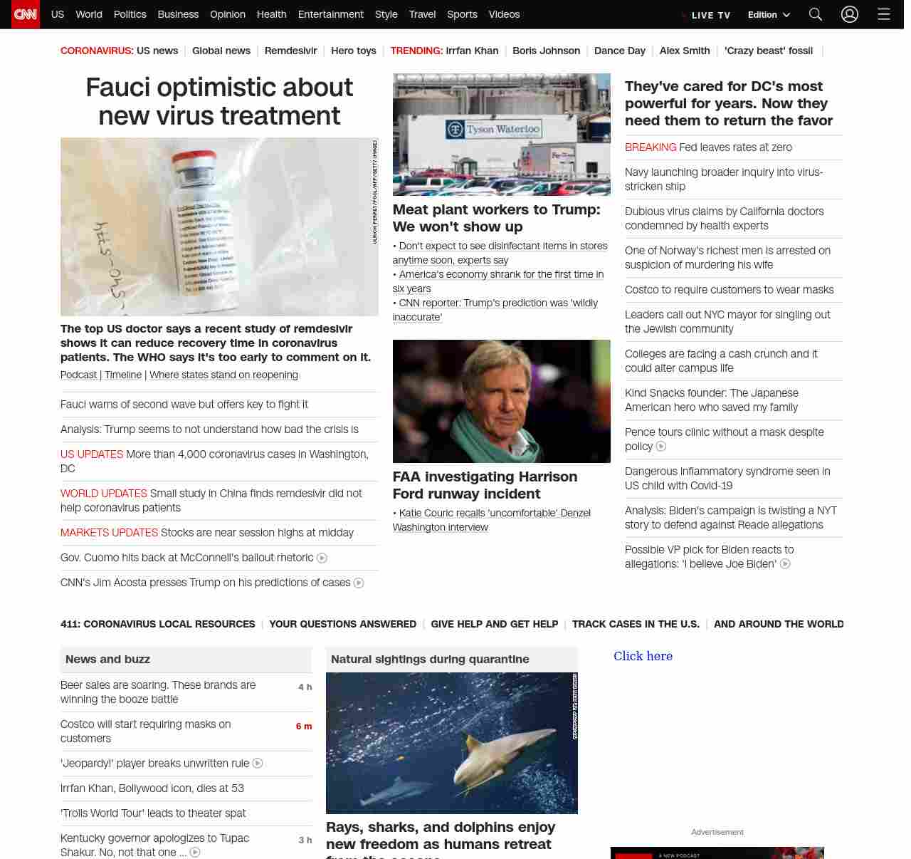 || screaming-banner-text banner-text-size–char-47″ data-analytics=”_list-hierarchical-xs_article_”> Trump seems to not understand how bad the crisis is ||” , title: “CNN – Breaking News, Latest News and Videos” , siblings: {“articleList”:[{“uri”:”/us/live-news/us-coronavirus-update-04-29-20/index.html”,”headline”:”u003cstrong>The top US doctor expresses optimism over results from a study of a possible treatment. The WHO says it’s too early to comment on it.u003c/strong>”,”thumbnail”:”//cdn.cnn.com/cnnnext/dam/assets/200417112031-gilead-remdesivir-0408-small-11.jpg”,”duration”:””,”description”:”u003ca href=”https://www.cnn.com/audio/podcasts/corona-virus” target=”_blank”>Podcastu003c/a>u003ca href=”https://www.cnn.com/2020/04/29/world/coronavirus-newsletter-04-29-20-intl/index.html” target=”_blank”> u003c/a>| u003ca href=”https://www.cnn.com/interactive/2020/health/covid19-pandemic-video-timeline/index.html” target=”_blank”>Timelineu003c/a> | u003ca href=”https://www.cnn.com/interactive/2020/us/states-reopen-coronavirus-trnd/” target=”_blank”>Where states stand on reopeningu003c/a>”,”layout”:””