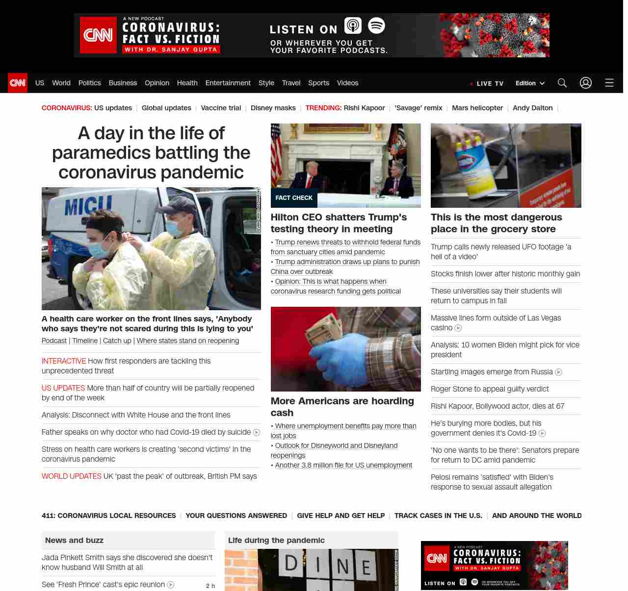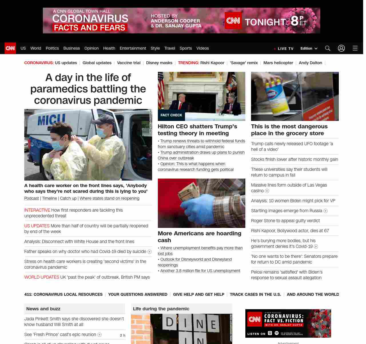 || screaming-banner-text banner-text-size–char-35″ data-analytics=”_list-hierarchical-xs_article_”> More Americans are hoarding cash ||” , title: “CNN – Breaking News, Latest News and Videos” , siblings: {“articleList”:[{“uri”:”/2020/04/30/us/paterson-pandemic-paramedics/index.html”,”headline”:”u003cstrong>A health care worker on the front lines says, ‘Anybody who says they’re not scared during this is lying to you’u003c/strong>”,”thumbnail”:”//cdn.cnn.com/cnnnext/dam/assets/200428165630-paterson-suiting-up-small-11.jpg”,”duration”:””,”description”:”u003ca href=”https://www.cnn.com/audio/podcasts/corona-virus” target=”_blank”>Podcastu003c/a> | u003ca href=”https://www.cnn.com/interactive/2020/health/covid19-pandemic-video-timeline/index.html” target=”_blank”>Timelineu003c/a> | u003ca href=”https://www.cnn.com/2020/04/30/world/coronavirus-newsletter-04-30-20-intl/index.html” target=”_blank”>Catch upu003c/a> | u003ca href=”https://www.cnn.com/interactive/2020/us/states-reopen-coronavirus-trnd/” target=”_blank”>Where states stand on reopeningu003c/a>”,”layout”:””