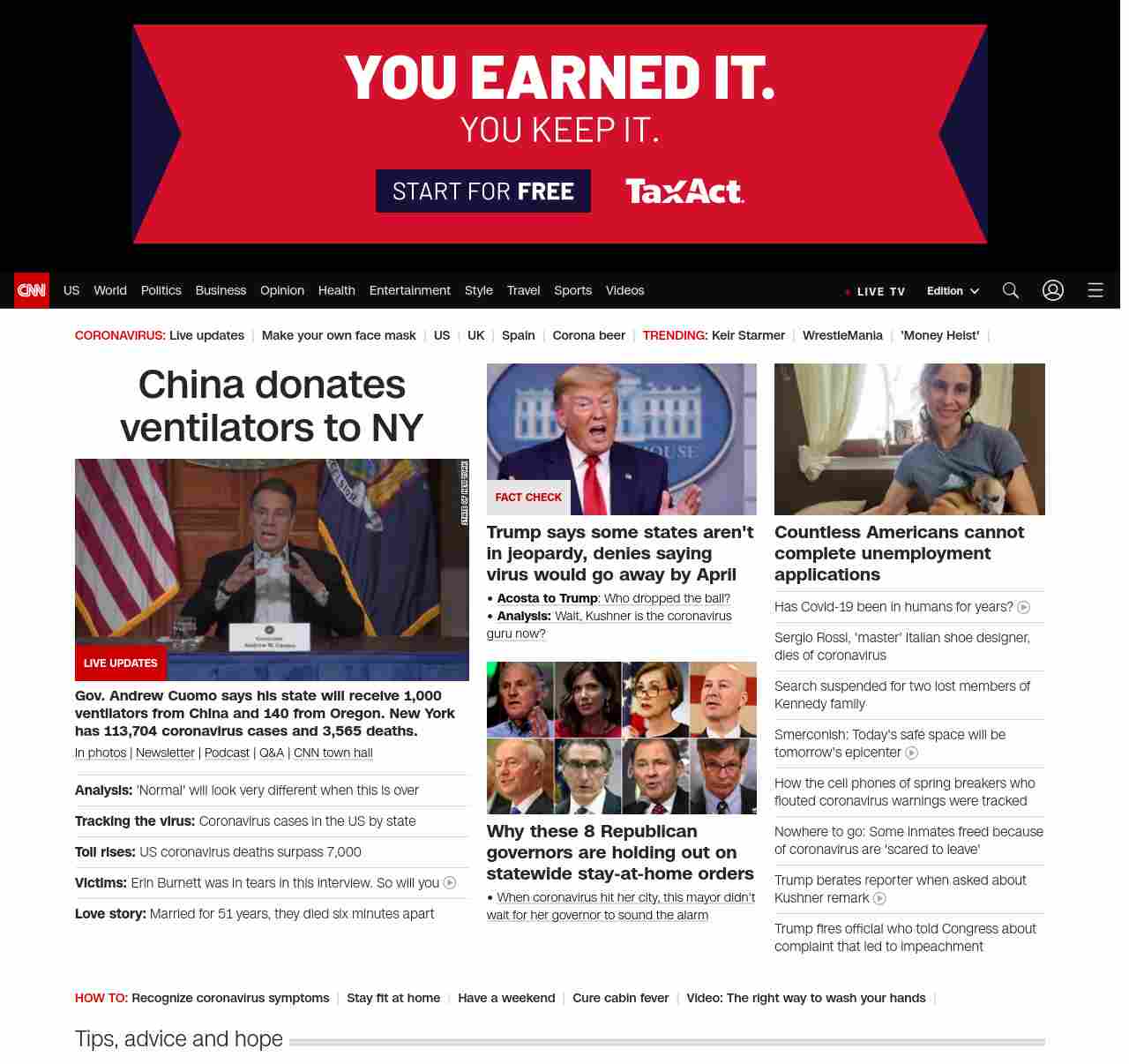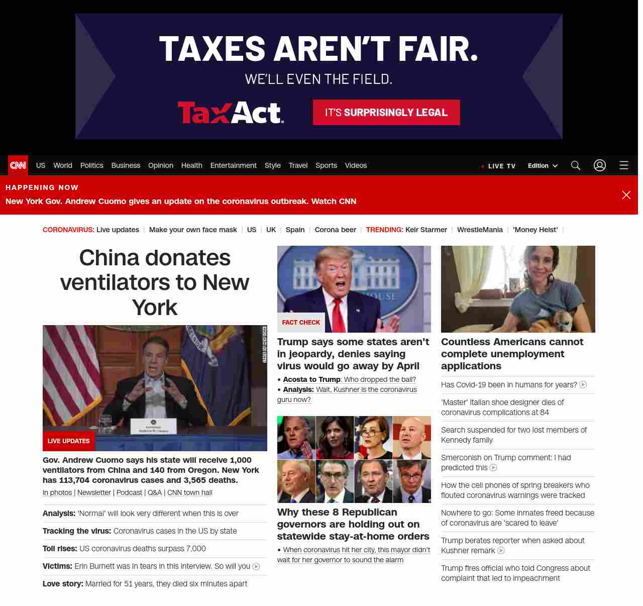 || screaming-banner-text banner-text-size–char-32″ data-analytics=”_list-hierarchical-xs_hyperlink_”> China donates ventilators to NY ||” , title: “CNN – Breaking News, Latest News and Videos” , siblings: {“articleList”:[{“uri”:”/2020/04/04/europe/coronavirus-masks-war-intl/index.html”,”headline”:”u003cstrong>Global scramble: u003c/strong>Coronavirus sparks a ‘war for masks'”,”thumbnail”:”//cdn.cnn.com/cnnnext/dam/assets/200128110054-n95-respirators-file-small-11.jpg”,”duration”:””,”description”:”As the u003ca href=”https://cnn.com/world/live-news/coronavirus-pandemic-04-04-20/index.html” target=”_blank”>coronavirus pandemicu003c/a> spreads across Europe and the United States, a global scramble for medical equipment such as respirator masks and gloves is underway. Several countries have accused the United States of trying to hijack their orders, but the details of who may have done what to whom are still murky.”,”layout”:””