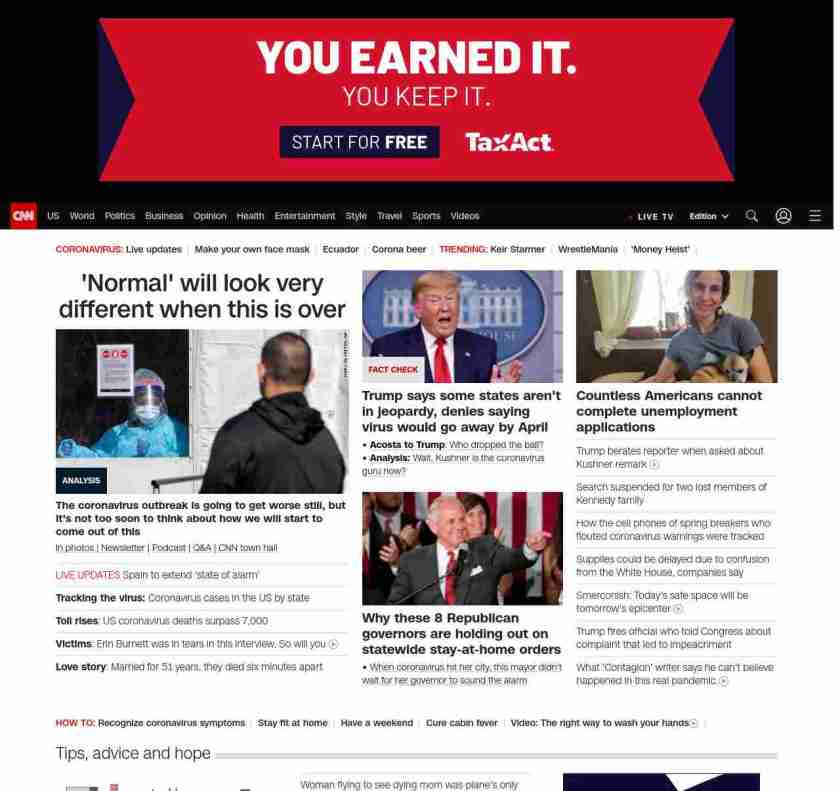 || screaming-banner-text banner-text-size–char-47″ data-analytics=”_list-hierarchical-xs_article_”> ‘Normal’ will look very different when this is over ||” , title: “CNN – Breaking News, Latest News and Videos” , siblings: {“articleList”:[{“uri”:”/2020/04/04/politics/what-matters-april-3/index.html”,”headline”:”u003cstrong>The coronavirus outbreak is going to get worse still, but it’s not too soon to think about how we will start to come out of thisu003c/strong>”,”thumbnail”:”//cdn.cnn.com/cnnnext/dam/assets/200403180010-02-coronavirus-testing-new-york-small-11.jpg”,”duration”:””,”description”:”u003ca href=”https://www.cnn.com/2020/03/19/world/gallery/novel-coronavirus-outbreak/index.html” target=”_blank”>In photos u003c/a>| u003ca href=”https://www.cnn.com/specials/coronavirus-newsletter?utm_source=hp&source=hp” target=”_blank”>Newsletteru003c/a> | u003ca href=”https://www.cnn.com/audio/podcasts/corona-virus”>Podcastu003c/a> | u003ca href=”https://www.cnn.com/interactive/2020/health/coronavirus-questions-answers/” target=”_blank”>Q&Au003c/a> | u003ca href=”https://www.cnn.com/2020/04/02/app-news-section/full-coronavirus-town-hall-april-2-2020-app/index.html” target=”_blank”>CNN town hallu003c/a>”,”layout”:””